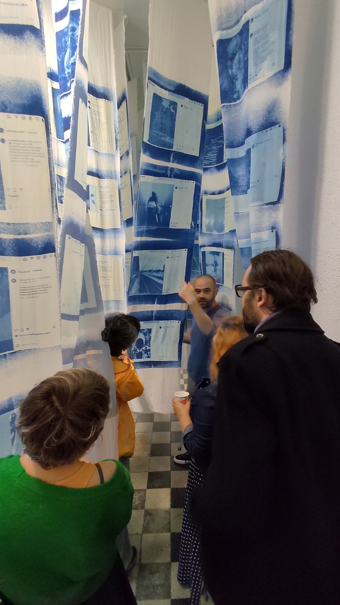 Instalația înrădăcinată în mediul online a fost adusă în plan material, prin intermediul unei tehnici fotografice cu aproape 200 de ani de istorie (cianotipia este una dintre primele tehnici stabile ale fotografiei, bazată de săruri feroase și expunere la soare), astfel încât vizitatorii să poată avea experiența unei rețele sociale transpuse în spațiul fizic.