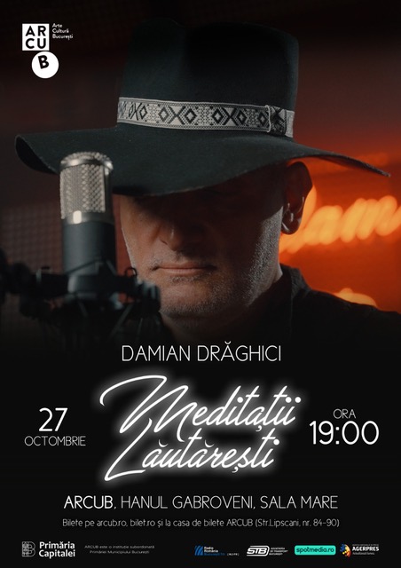 Damian Drăghici se reinventează și prezintă muzica lăutărească în concertul inedit „Meditaţii lăutăreşti” organizat de ARCUB – Centrul Cultural al Municipiului Bucureşti pe 27 octombrie, de la ora 19:00, la Sala Mare – ARCUB.