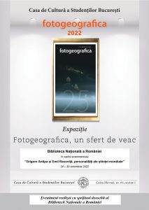 Luni, 24 octombrie 2022, începând cu ora 10:30, are loc expoziția de fotografie „Fotogeografica, un sfert de veac” la Biblioteca Națională a României, organizată în cadrul Conferinței omagiale „Grigore Antipa și Emil Racoviță, personalități ale științei mondiale”.