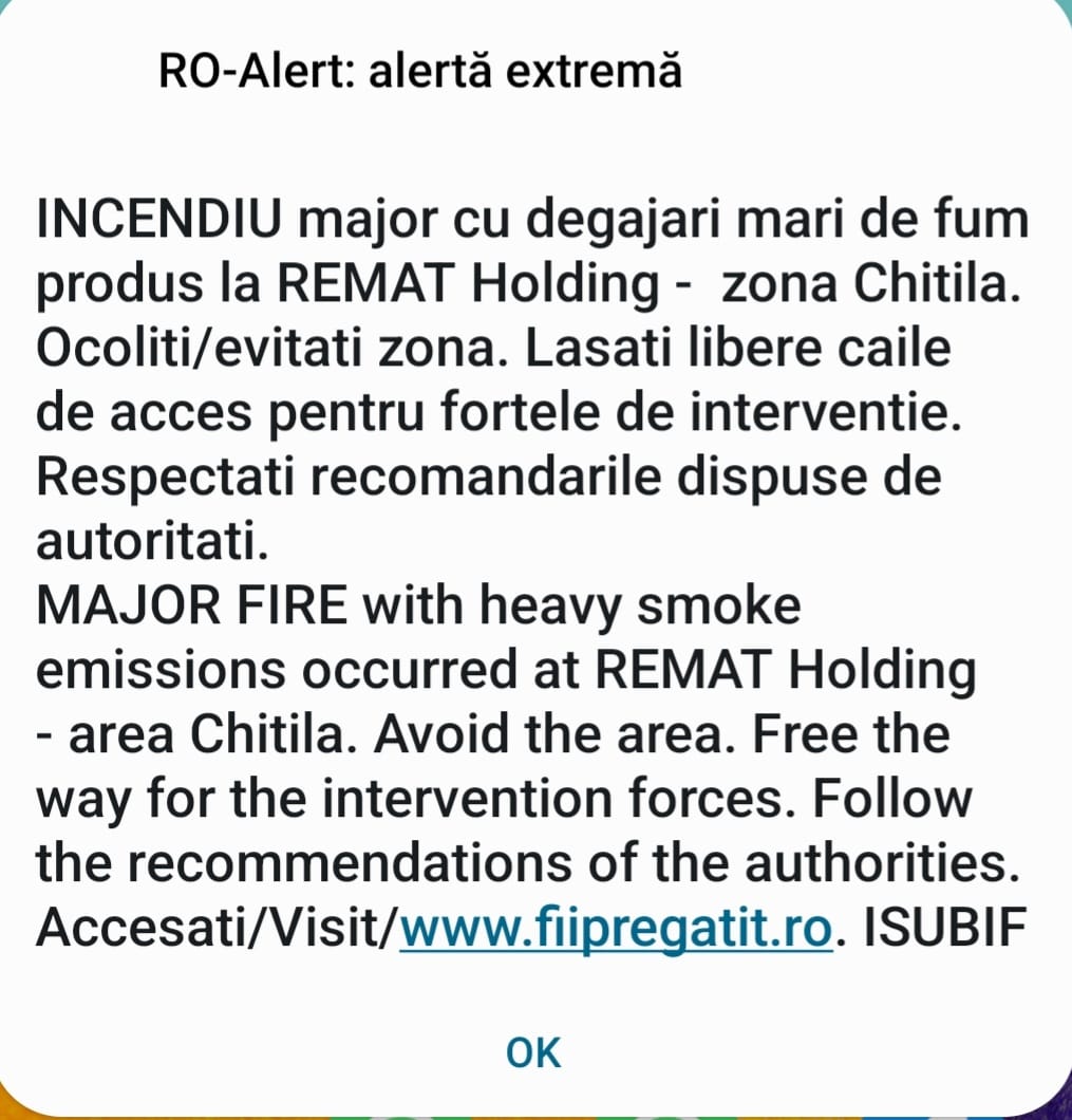 A fost remis mesaj prin sistemul RoAlert.