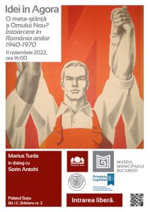 Muzeul Municipiului București invită publicul la Idei în Agora, cu tema „O meta-știință a Omului Nou? Întoarcere în România anilor 1940-1970” – Marius Turda în dialog cu Sorin Antohi. Evenimentul va avea loc pe data de 11 noiembrie 2022, începând cu ora 16:00, la Palatul Suțu (Bdul Ion C. Brătianu, nr. 2), București. Intrarea este liberă.