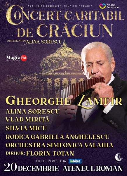 Ambasadorul naiului, maestrul Gheorghe Zamfir, solista Alina Sorescu, tenorul Vlad Miriță, sopranele Silvia Micu și Rodica Gabriela Anghelescu în acompaniamentul Orchestrei Simfonice Valahia sub bagheta dirijorului Florin Totan vor încânta audiența de la Ateneul Român printr-un spectacol de înaltă ținută, momente muzicale pline de emoție și interpretări variate ale unor melodii de Crăciun din repertoriul internațional sau colinde tradiționale românești, în armonie perfectă cu atmosfera de sărbătoare.