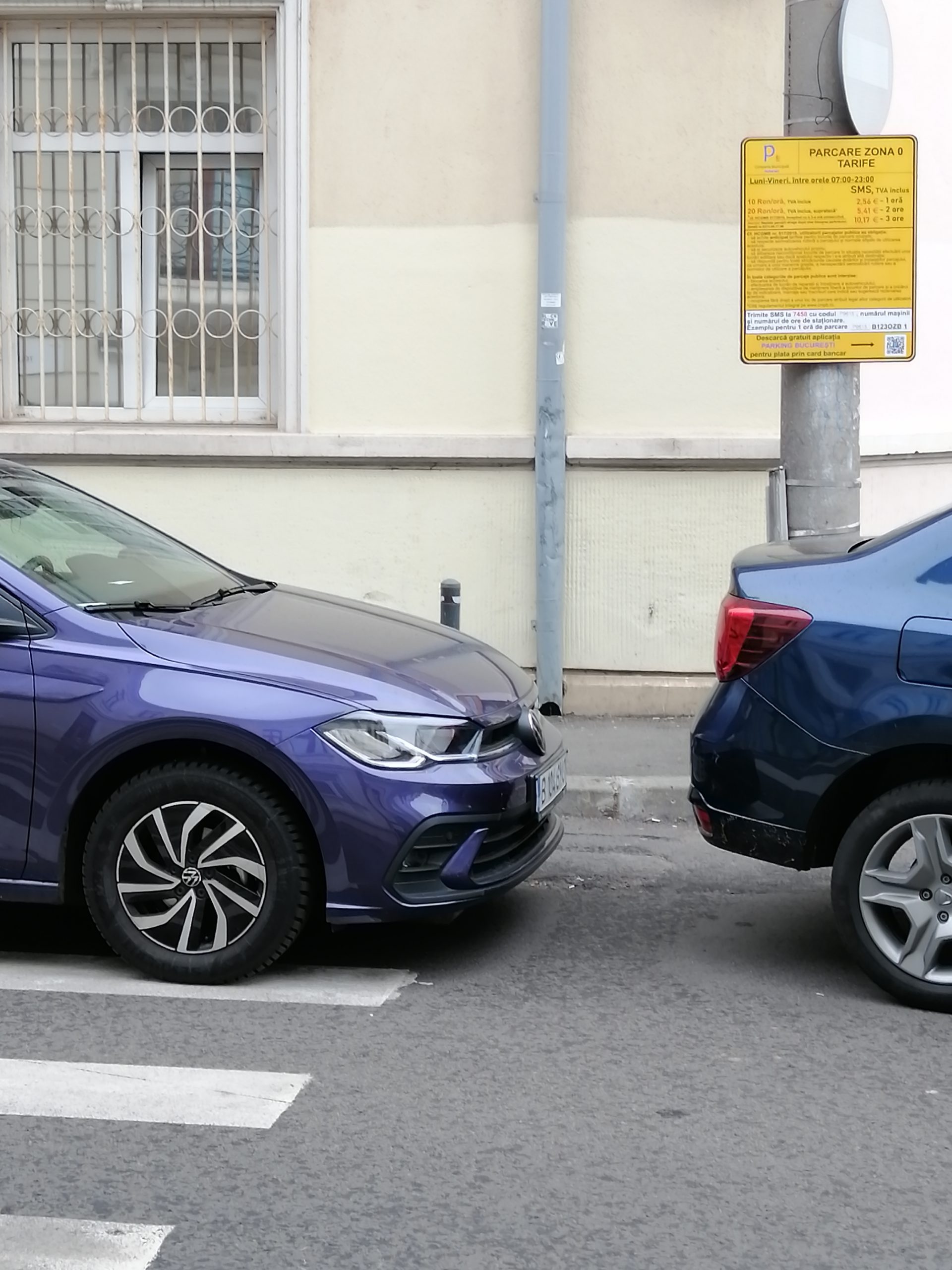 Totul ar fi în regulă dacă, pe strada Colței, la umbra plăcii cu tarifele de parcare, chiar pe trecerea de pietoni nu ar fi parcată o mașină.