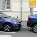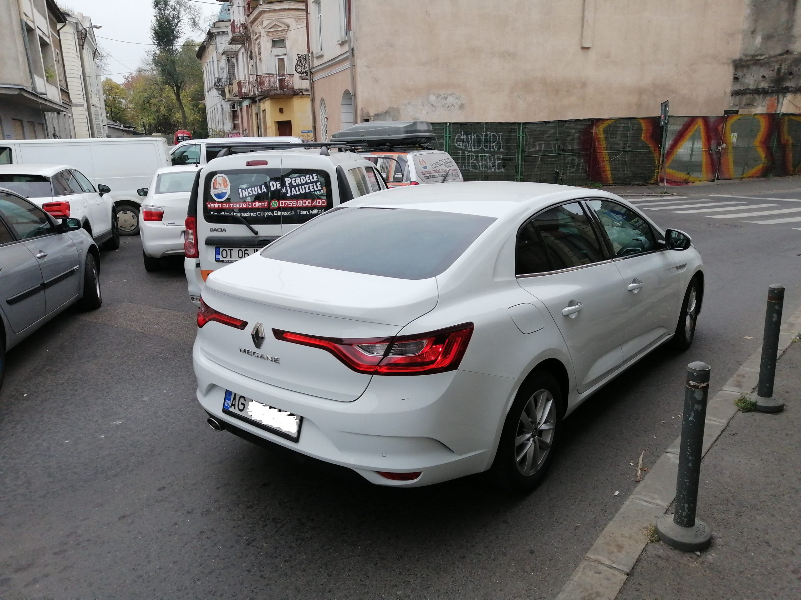 Alte mașini sunt parcate la două rânduri, astfel încât aproape blochează carosabilul.