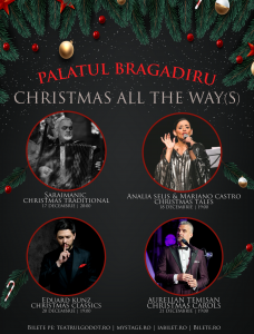 Christmas all the ways este conceptul sub care Palatul Bragadiru din București celebrează anul acesta spiritul Crăciunului, în perioada 17 – 23 decembrie, aducănd pe scenă artiști consacrați, stiluri muzicale diferite, pentru a atinge gusturi și sensibilități felurite, precum și o expoziție de artă contemporană romănească cu vănzare, pentru a oferi o notă de eleganță și savoare interbelică, sărbătorilor de Crăciun.