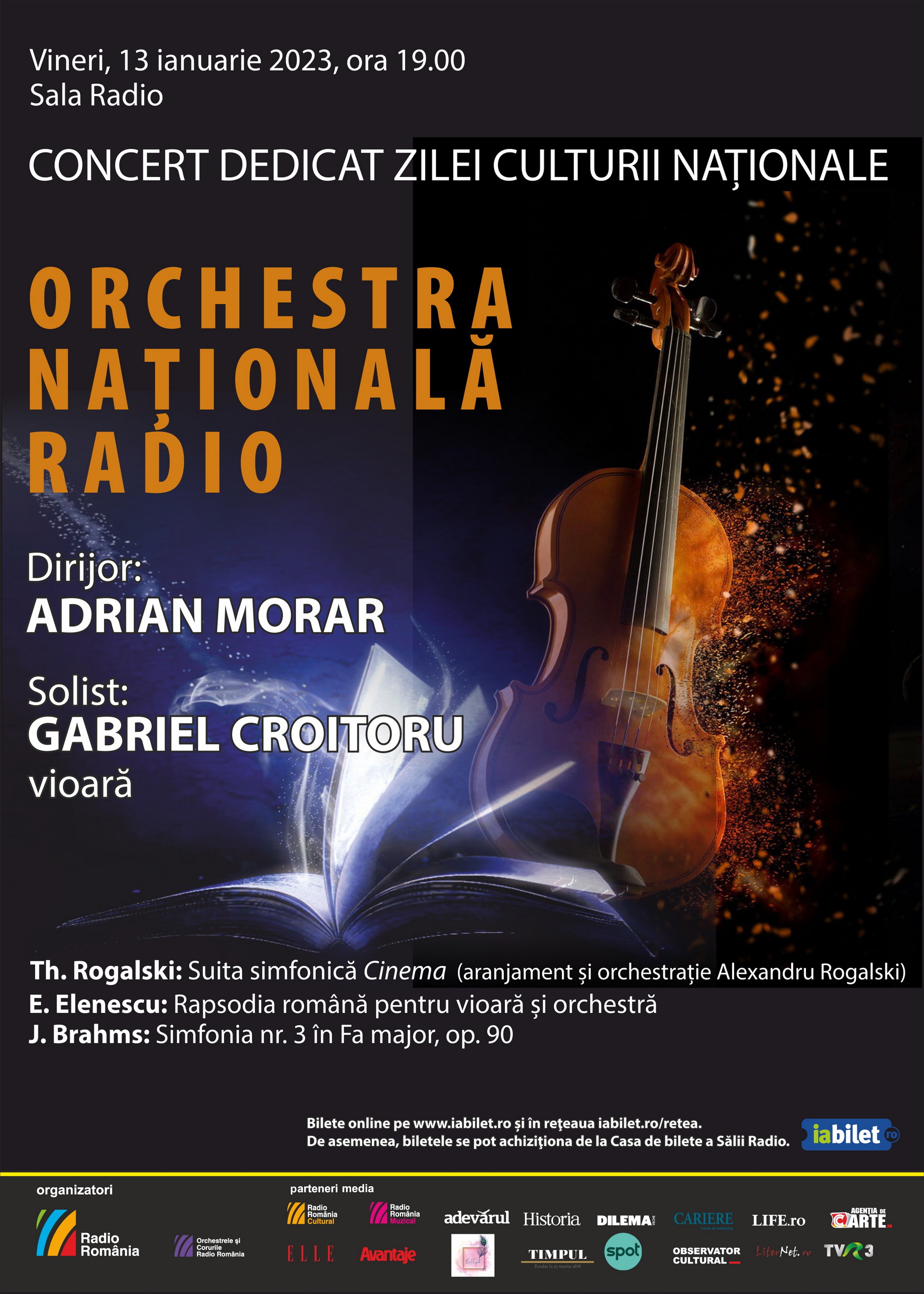 Vineri, 13 ianuarie 2023 (de la 19:00), primul concert al noului an pe scena Sălii Radio va fi prezentat cu ocazia Zilei Culturii Naționale și se va desfășura sub bagheta lui Adrian Morar, dirijor al Operei Naționale Române Cluj-Napoca.