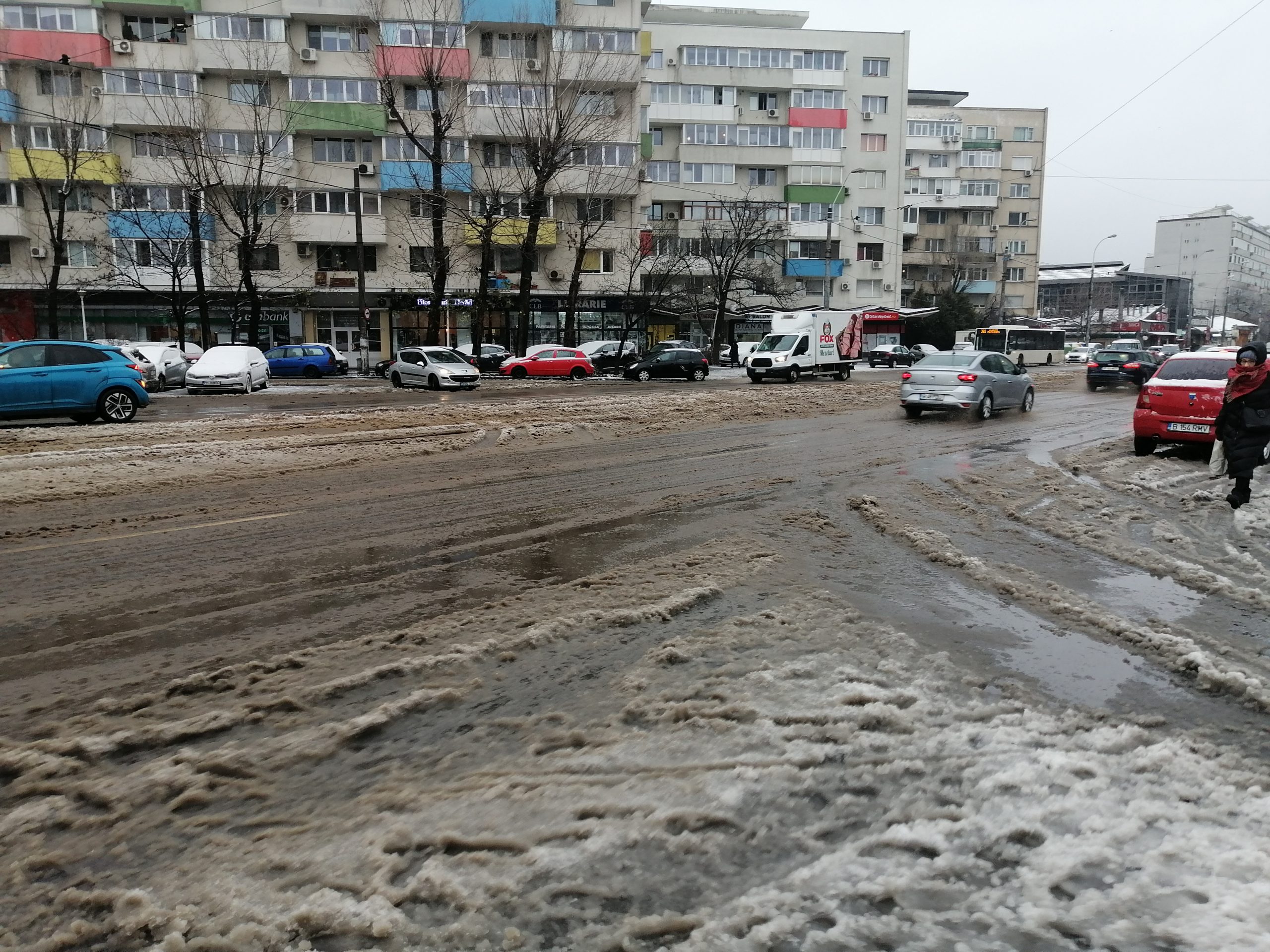În Sectorul 1, nu am reușit să identificăm pe bulevarde utilaje de deszăpezire, nici operatori manuali. Lapovița și zăpada s-au topit, pe carosabil, datorită traficului. În intersecții trecerile de pietoni s-au inundat. Pentru a traversa, în această dimineață pietonii au fost nevoiți să se afunde în bălți până peste glezne.
