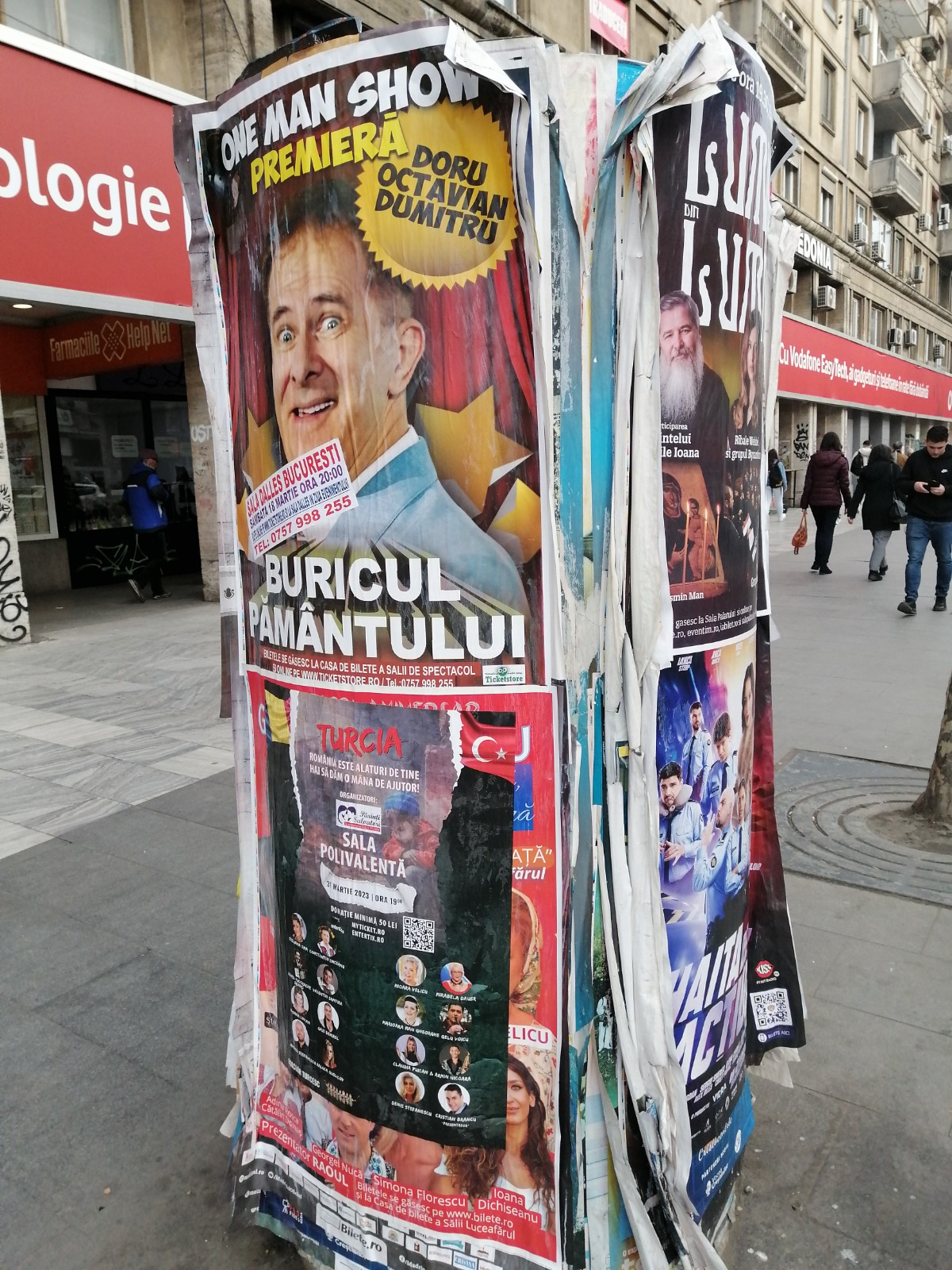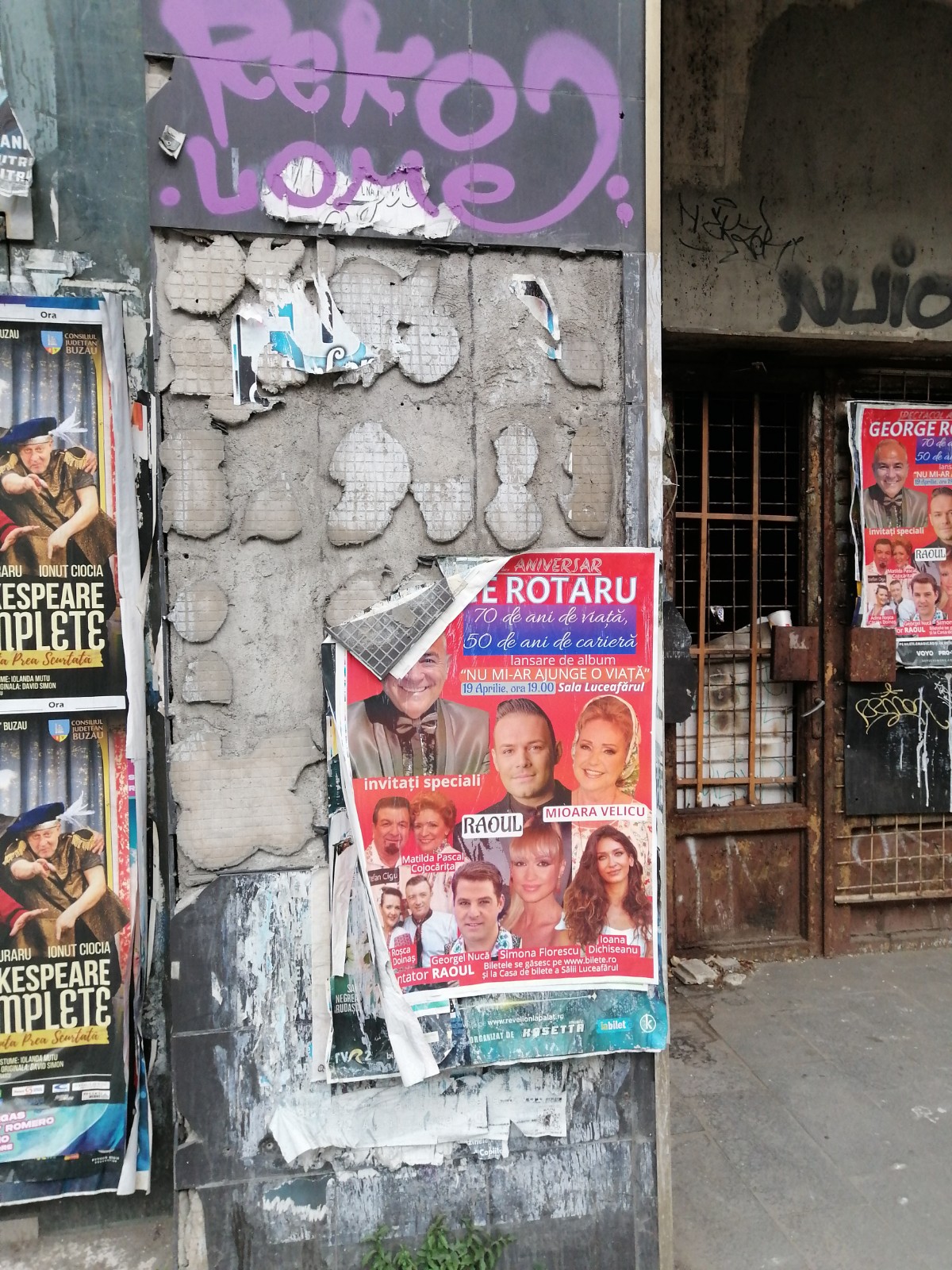 tapetată cu straturi succesive de afișe.