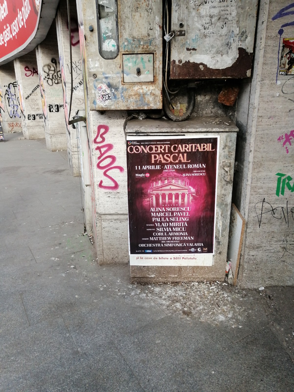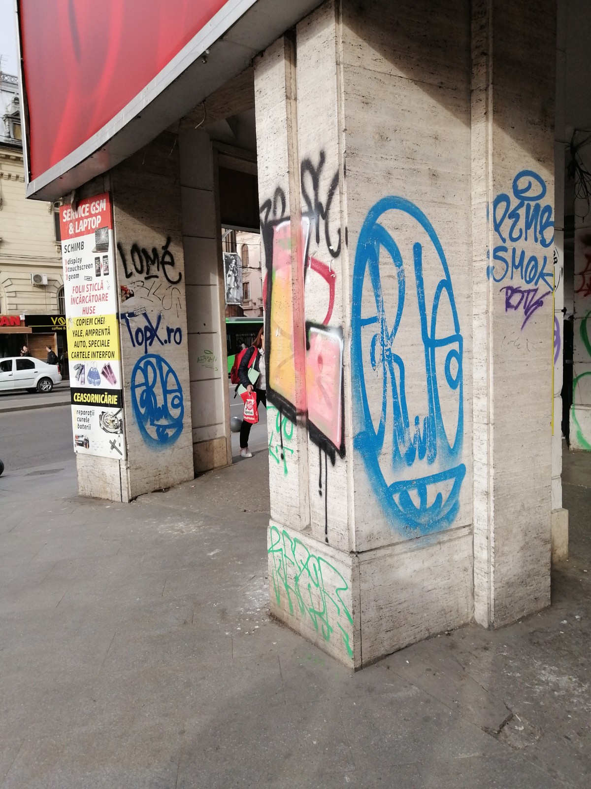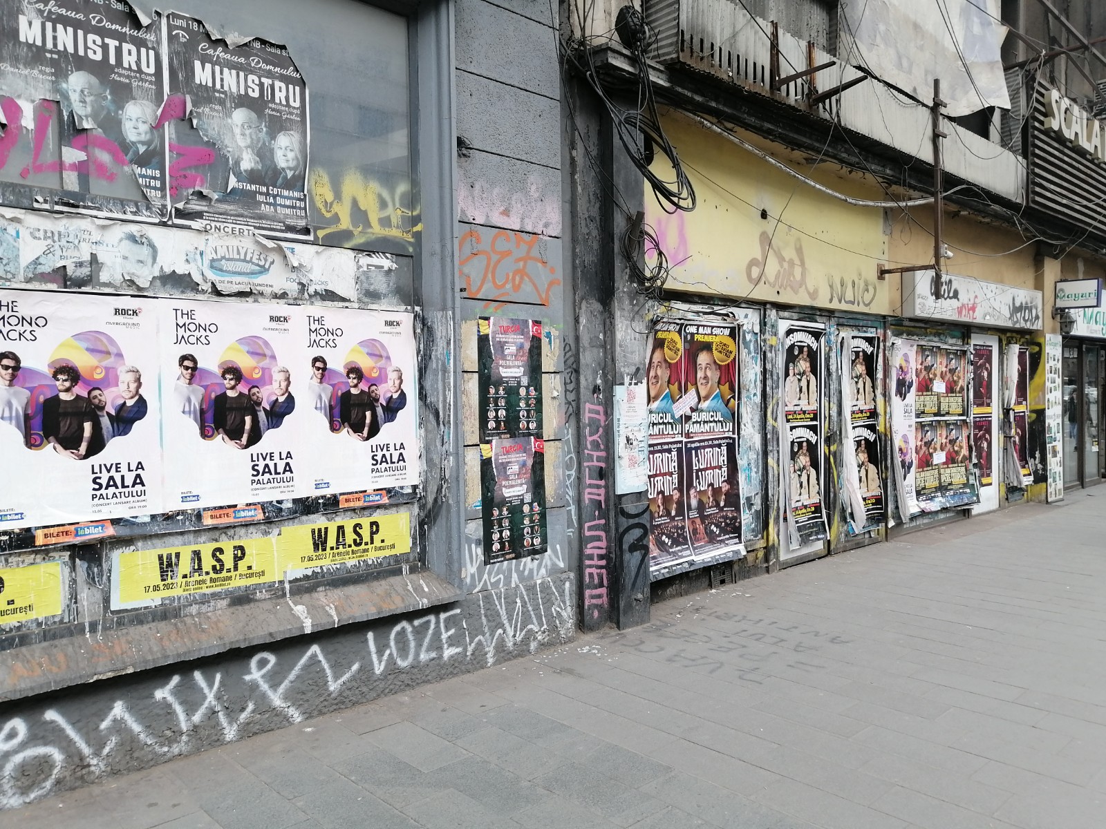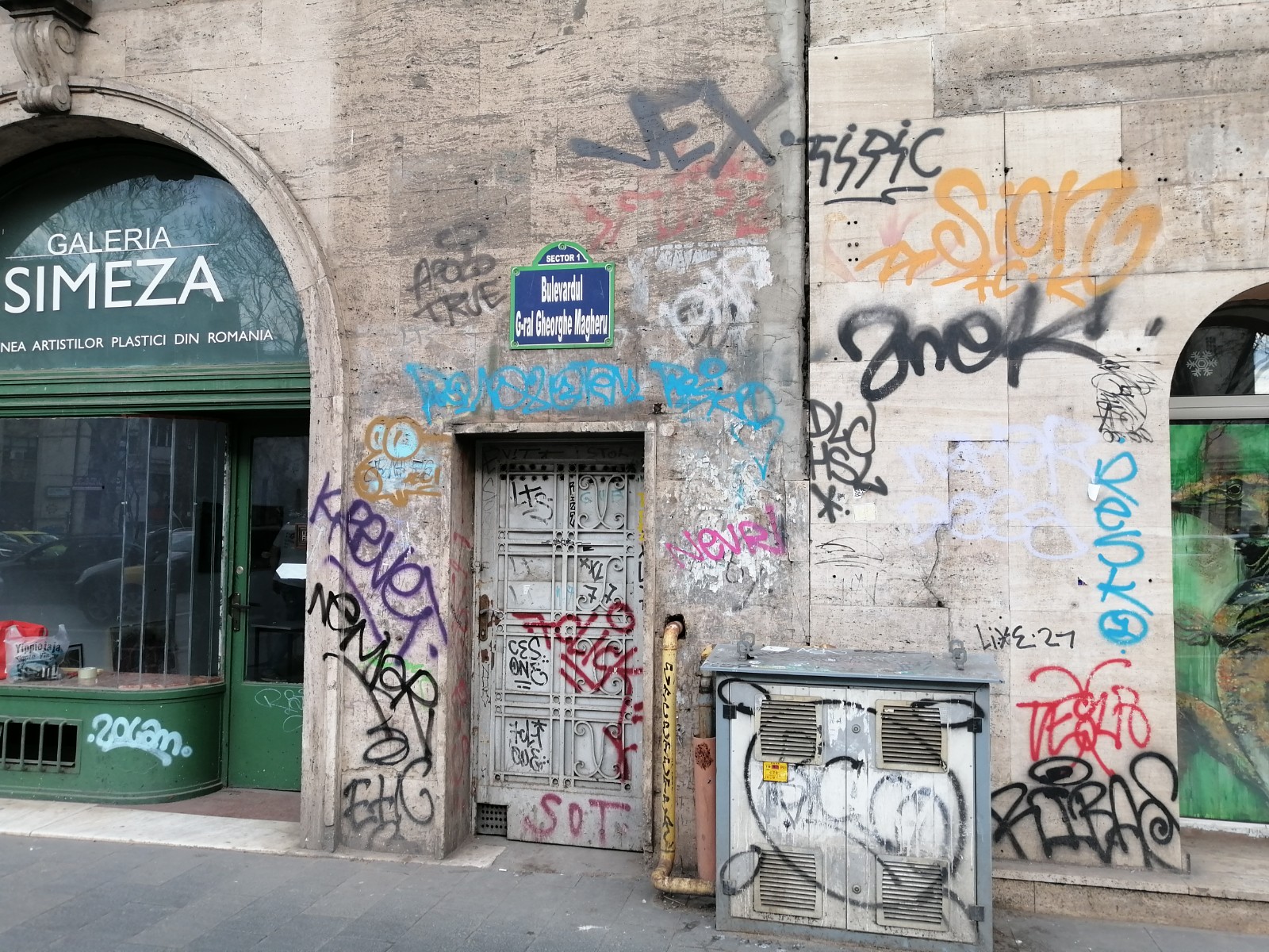 Locurile neocupate de afise sunt acoperite de “creațiile” așa-zișilor artiști urbani, De la mazgaleli, reprezentări ciudate, nume de foste si actuale iubiri, porecte, indemnuri,inimi sagetate sau simboluri falice…le gasesti pe toate, pe toate fatadele, chiar si a celor cu valoare de patrimoniu.