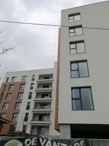 Numai spațiul comercial de la parter este acum scos la vânzare cu 650.000 de euro. Un apartament de trei camere costă 330.000 de euro.