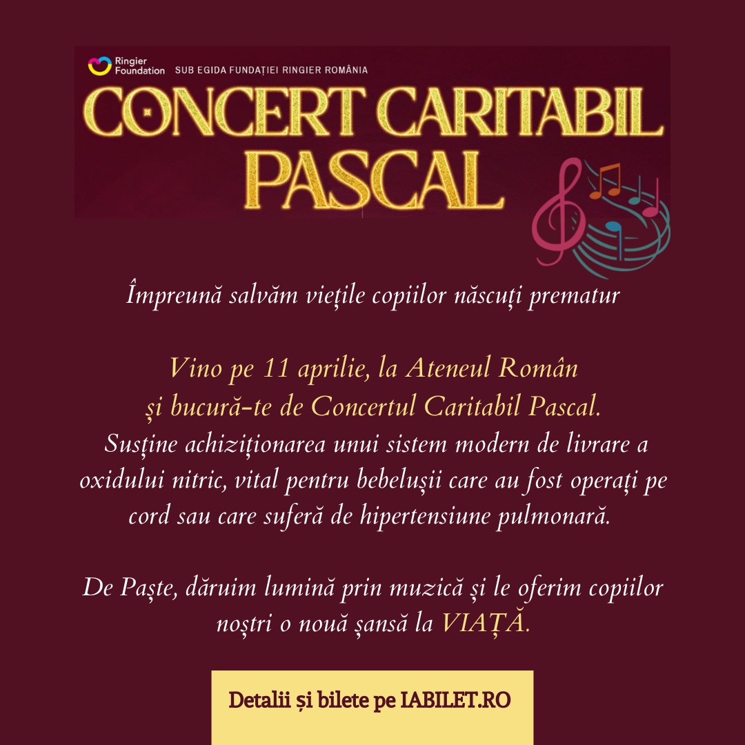 Biletele pentru Concertul Caritabil Pascal sunt disponibile online pe Iabilet.ro precum și în rețeaua magazinelor partenere Iabilet.