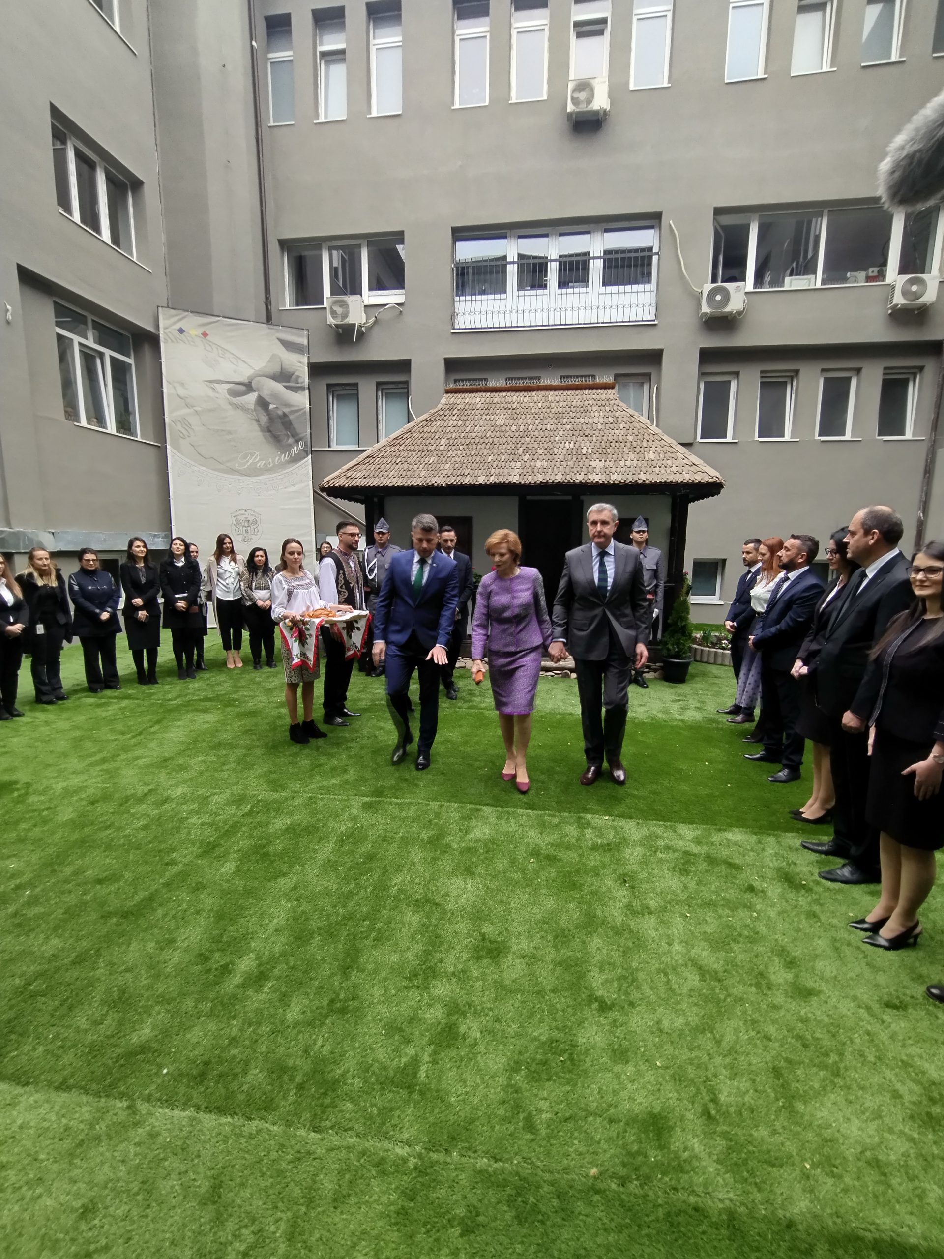 Inaltii oaspeti au fost intampinati cu onor, paine si sare, li s-a oferit un buchet de flori apoi au vizitat Casuta Traditionala Romaneasca, prezentata in cadrul Targului de la Berlin in anul 2020 si realizata in totalitate de catre angajatii Monetariei.
