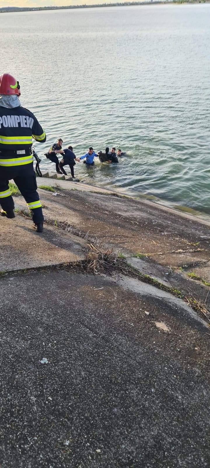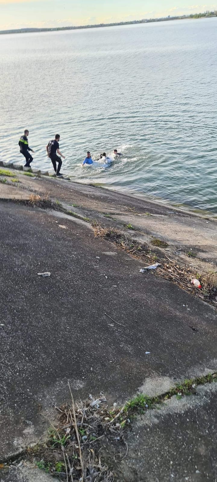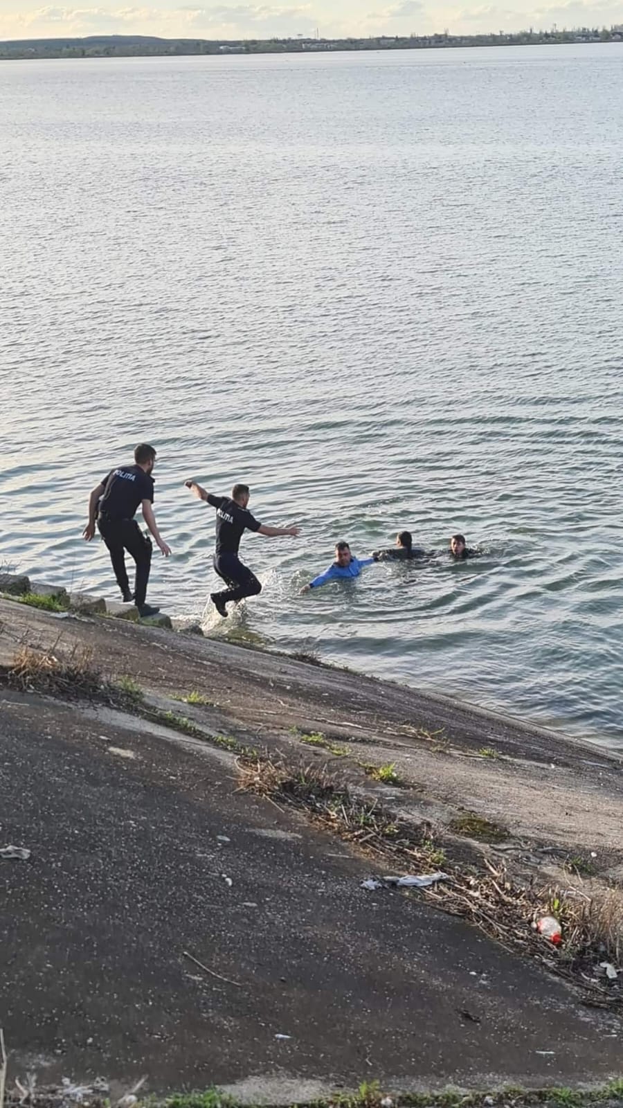 aruncat dispărând sub apa într-o fracțiune de secundă, timp în care fără nicio urmă de ezitare cei doi polițiști au sărit imediat în ajutorul acesteia reușind să evite o tragedie. Victima a fost urcata pe dig în zonă sigura și a fost predată echipajului SMURD care abia sosise.
