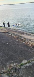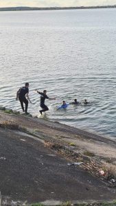 Văzând atâta agitație în apropiere, victima si-a lua avânt și s-a aruncat dispărând sub apa într-o fracțiune de secundă, timp în care fără nicio urmă de ezitare cei doi polițiști au sărit imediat în ajutorul acesteia reușind să evite o tragedie. Victima a fost urcata pe dig în zonă sigura și a fost predată echipajului SMURD care abia sosise.