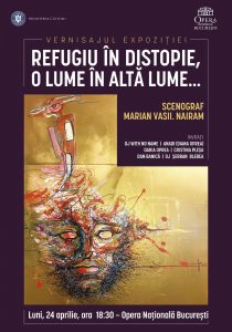 În seara de 24 aprilie, de la ora 18:30, Opera Națională București va găzdui vernisajul performativ al celei mai recente serii de lucrări de pictură, cuprinse într-o colecție numită „Refugiu în distopie, sub semnătura artistului scenograf Marian Văsii. Nairam. Prezenta colecție marchează posibilități la limită și devine un purgatoriu al unei realități posibile, un „Cântec Mut” (Tudor Arghezi) și / sau o Cutie a Pandorei.