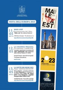Evenimentele, programate în perioada 11-13 mai 2023, se vor desfășura în parteneriat cu Primăria Romei, Biblioteca Europeană din Roma, Editura Italo Svevo din Trieste, Mercati di Traiano – Musei dei Fori Imperiali, Parco Archeologico del Colosseo, Muzeul Național de Istorie a României, Timișoara – Capitală Europeană a Culturii 2023 și Zetema Progetto Cultura.
