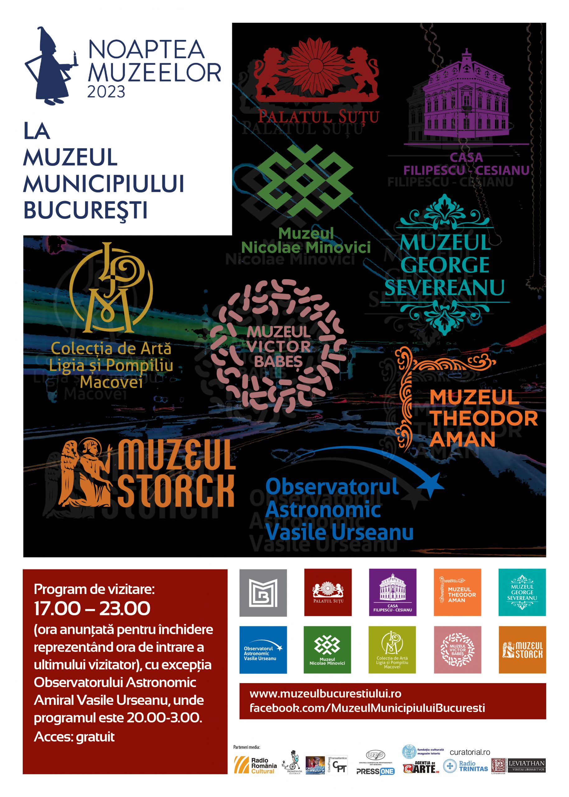 De Noaptea Muzeelor, Muzeul Municipiului București va întâmpina publicul cu variate și incitante expoziții care se vor putea vizita gratuit, precum și cu reprezentații teatrale și concerte. Programul de vizitare va fi între orele 17:00-23:00. La Observatorul Astronomic Amiral Vasile Urseanu programul este diferit: va fi deschis între orele 20:00 – 03:00. Orele anunțate pentru închidere reprezintă ora de intrare a ultimului vizitator.