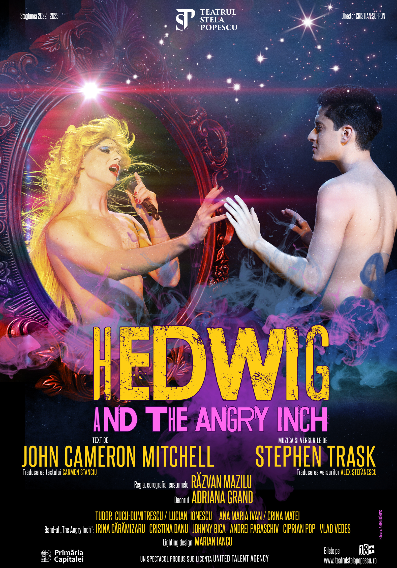 Tudor Cucu Dumitrescu şi Lucian Ionescu sunt protagoniştii musicalului ce poartă semnătura creatorului Răzvan Mazilu (regia, coregrafia şi costumele) Hedwig and the Angry Inch pe un text de John Cameron, muzica și versurile Stephen Trask, ce va fi prezentat în premieră de Teatrul Stela Popescu pe 7 şi 8 iunie, ora 19:00, la Sala Olga Tudorache a Teatrului Metropolis.