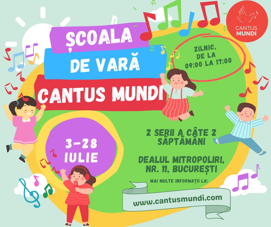 Școala de Vară Cantus Mundi se desfășoară cu scopul de a oferi copiilor o alternativă educațională complexă, aplicată și distractivă, prin procese interactive, learning by doing și include: jocuri de cunoaștere și dezvoltare personală (muzicale, sociale, de rol, de comunicare), audiții muzicale explicate, ateliere de muzică corală, noțiuni de percuție, mișcare scenică, vizionări de spectacole cu explicații și jocuri interactive, improvizație muzicală sau întâlniri cu artiști cunoscuți.