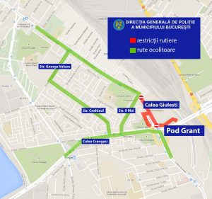 Astfel, în data de 25 iunie, în intervalul orar 02:00 – 23:00, se va restricționa traficul rutier pe Calea Giulești, segmentul de drum cuprins între Podul Grant și Str. 9 Mai, cu devierea traficului pe arterele adiacente.