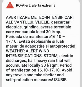 RO-Alert- Alertă extremă pentru București și județul Ilfov