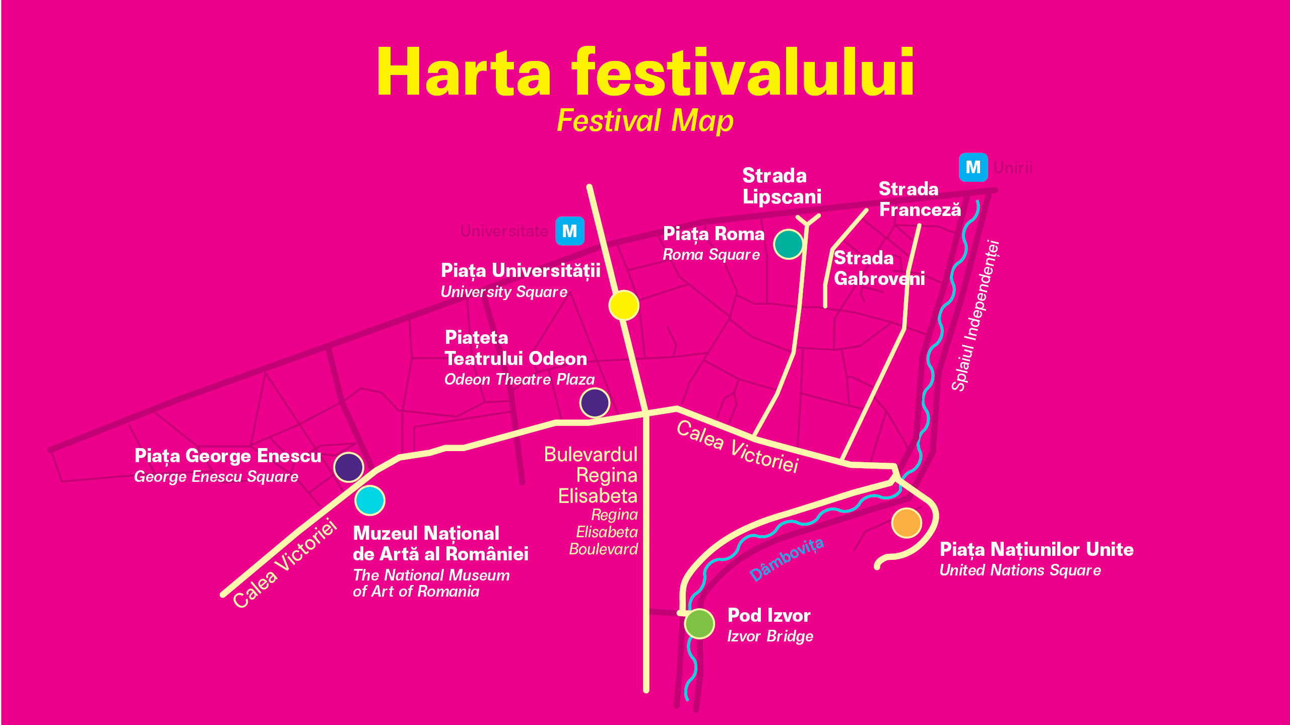 Atmosfera festivă este completată de artiştii italieni în cadrul show-ului muzical interactiv Street Piano, în faţa Muzeului Naţional de Artă al României şi de artiştii Flower Sway Poles, care dansează pe flori albe uriaşe, în Piaţa Universităţii şi de instalaţiile sonore Big Ears răspândite în mai multe puncte din oraş, de la Piaţa George Enescu, la Piaţa Universităţii, la Bulevardul Regina Elisabeta, Palatul CEC şi Splaiul Independenţei.