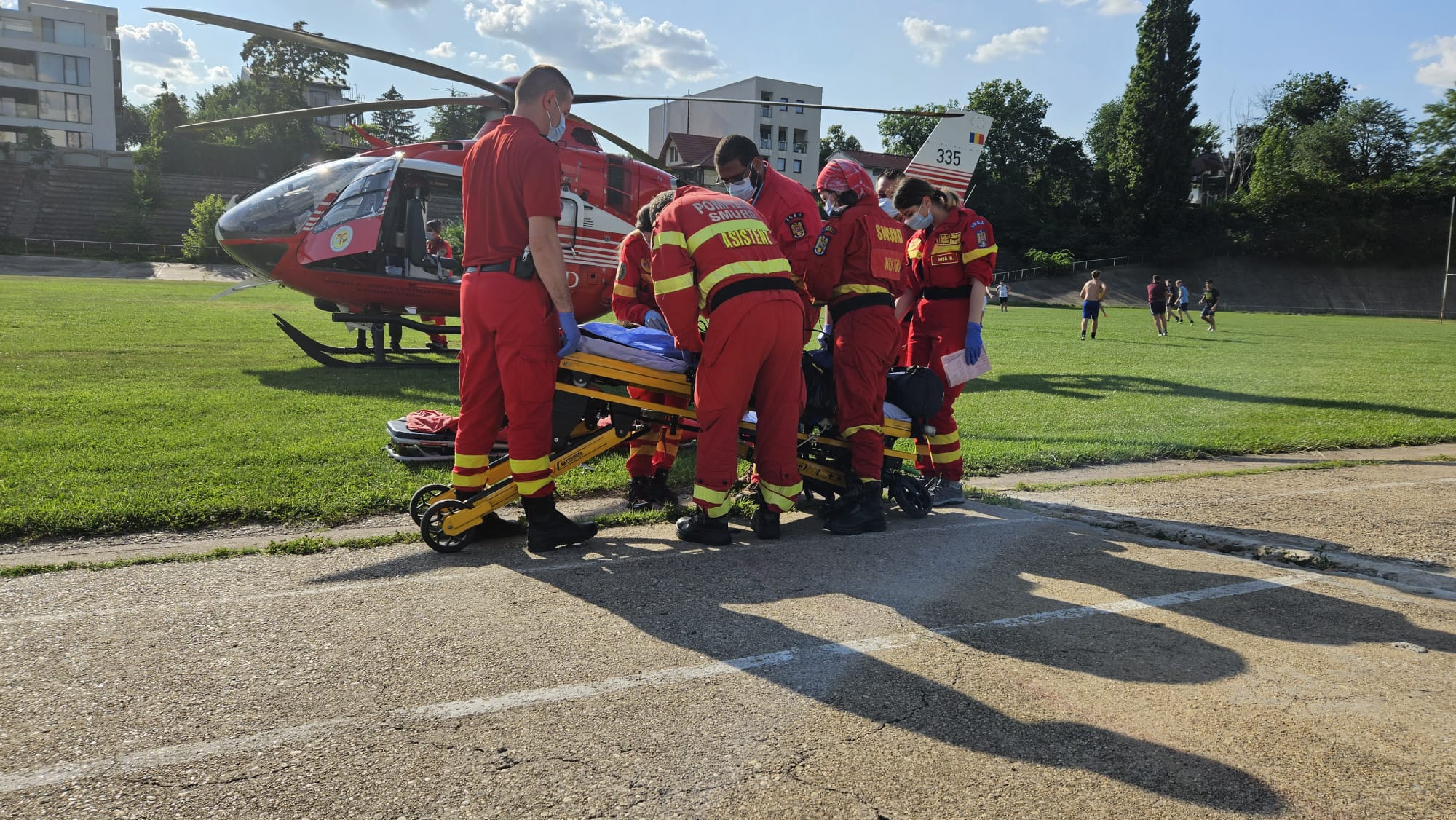 Cele 6 victime, conștiente, sunt transportate la spitalul Grigore Alexandrescu (3 cu cele 3 elicoptere SMURD, 3 cu Autospeciala pentru transport personal si victime multiple (ATPVM).