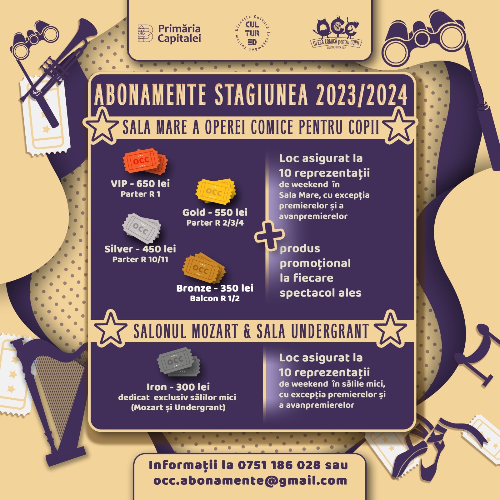 Abonamentele dedicate spectacolelor din sălile mici ale OCC, Sala UnderGrant și Salonul Mozart, sunt disponibile la prețul de 300 de lei și asigură locuri la 10 reprezentații de weekend desfășurate în aceste săli, cu excepția avanpremierelor și premierelor. În funcție de varianta aleasă, abonamentele cuprind puzzle-uri, seturi cadou și obiecte promoționale OCC.