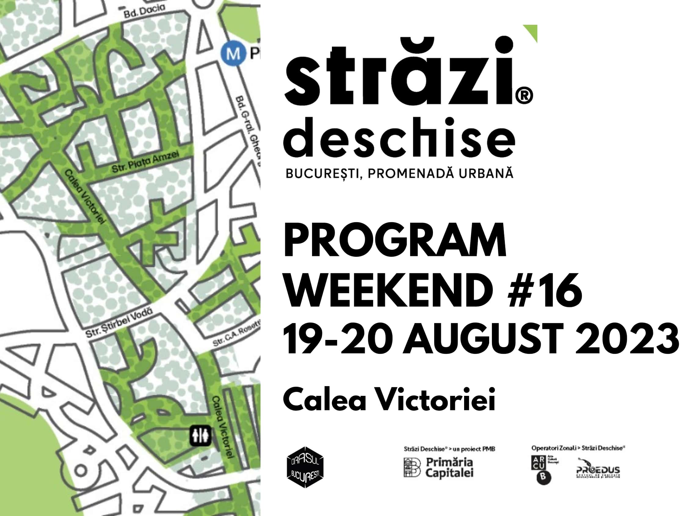 Între 19 şi 20 august 2023, „Străzi deschise – Bucureşti, Promenadă urbană” propune bucureştenilor și turiștilor activități recreative cu un nou weekend pietonal pe Calea Victoriei. Pe lângă clovni, spectacole-lectură, expoziţii şi teatru de stradă, programul celui de-al şaisprezecelea weekend „Străzi deschise – Bucureşti” include şi competiţia de karting electric „Marele ePremiu al Oraşului Bucureşti”, alături de Expoziţia Interactivă de Vehicule Electrice pentru adulţi şi copii – „Bucureştiul Electrizat de Copii”.