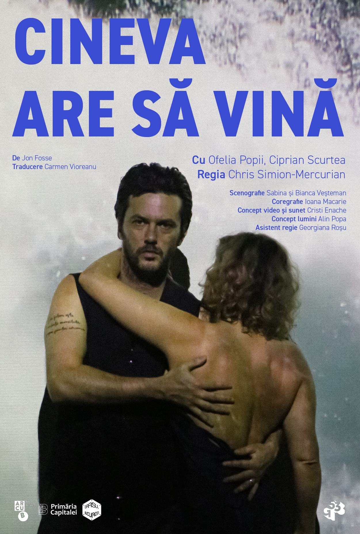 O dramă psihologică scrisă de Jon Fosse, autorul norvegian nominalizat la „Premiul Nobel pentru Literatură”, spectacolul CINEVA ARE SĂ VINĂ este cea mai recentă producţie teatrală a ARCUB, în regia lui Chris Simion-Mercurian, şi îi aduce pe scenă pe Ofelia Popii, actriţa distinsă de trei ori cu Premiul UNITER, şi pe Ciprian Scurtea, actor al Teatrului Naţional Radu Stanca din Sibiu.