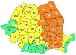 În nordul şi estul Munteniei, estul Transilvaniei şi în Moldova, vor fi perioade cu instabilitate atmosfericã accentuatã. Vor fi intensificãri ale vântului (rafale în general de 70…80 km/h), pe arii restrânse vijelii puternice, averse torenţiale, descãrcãri electrice şi grindinã. În intervale scurte de timp (1-3 ore) sau prin acumulare cantitãţile de apã vor fi de 35…40 l/mp şi izolat peste 50…60 l/mp.
