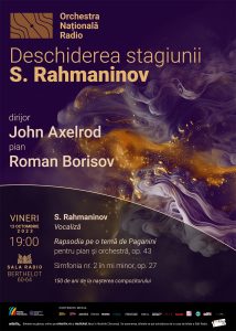 Primul eveniment, prezentat chiar de Orchestra Națională Radio, îi este dedicat integral marelui compozitor și pianist Serghei Rahmaninov, supranumit „ultimul mare romantic”. Concertul completează suita de manifestări prezentate în acest an pe scena Sălii Radio sub genericul Anul Internațional Rahmaninov, marcat de întreaga lume la 150 de ani de la nașterea artistului. Evenimentul se va derula sub bagheta dirijorului american John Axelrod – dirijor principal invitat al Orchestrei Simfonice din Kyoto (Japonia) și dirijor principal al Orchestrei Simfonice București.