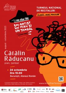 Marți, 24 octombrie, de la ora 19:00, pianistul Cătălin Răducanu va ajunge la Ateneul Român cu spectaculosul său recital ce încheie seria Turneului național Un artist, un pian și un țambal – clasic, jazz, folclor, primul său turneu solo în care a concertat în mai multe orașe mari și localități din țară, cântând cu egală măiestrie la pian şi la ţambal.