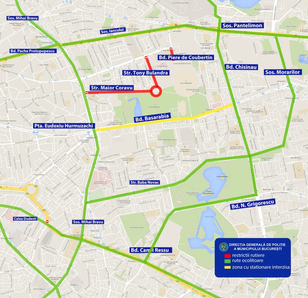 Se va interzice parcarea în zona intrării în Complexul Arena Națională dinspre Bd. Basarabia, pe Str. Vatra Luminoasă și Str. Tony Bulandra, precum și în perimetrul rondului din Str. Maior Coravu.