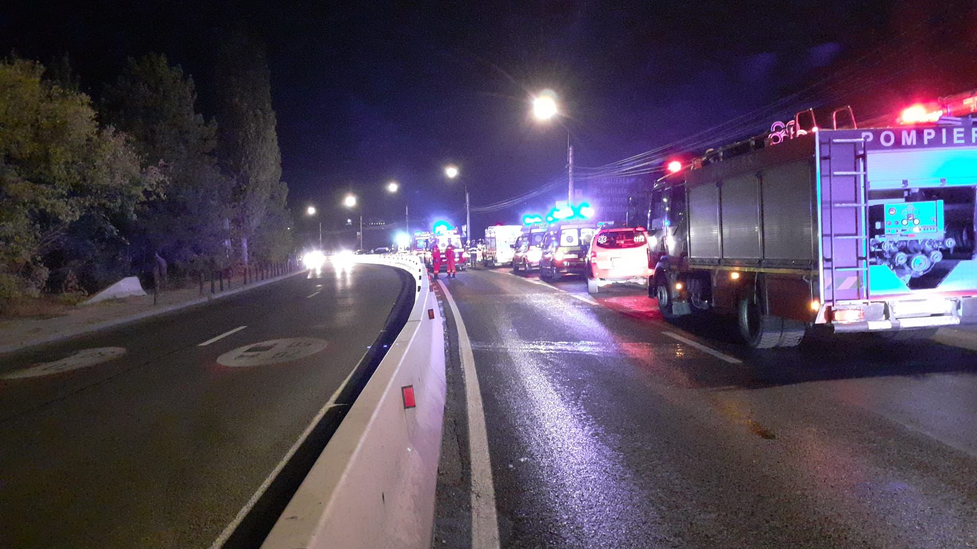 În această seară, pe raza localității Balotești, județul Ilfov – DN 1 (sensul spre Ploiești) a avut loc un accident rutier între 16 autoturisme și 1 microbuz.