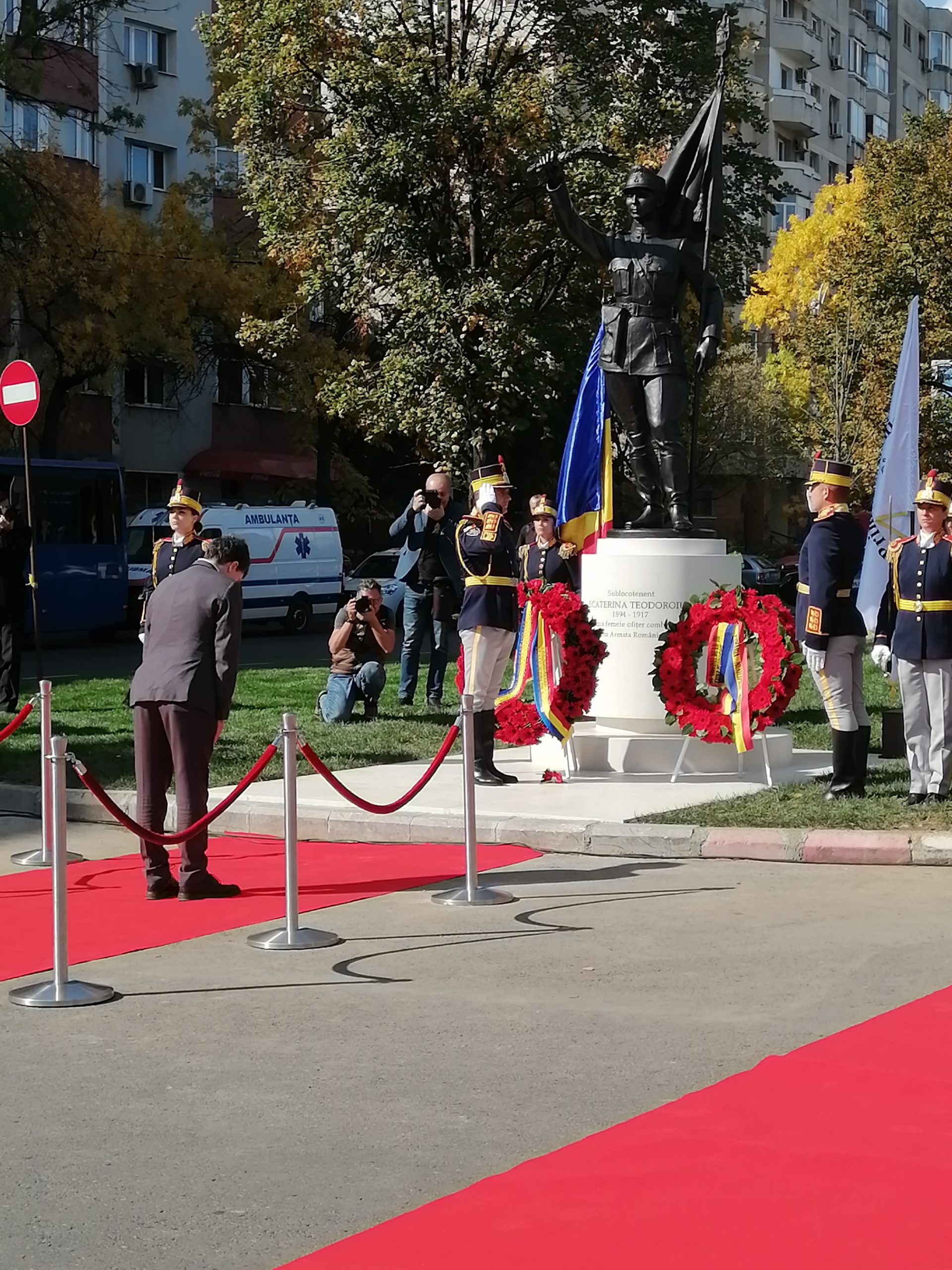 La intersecția Căii 13 Septembrie cu Șoseaua Panduri, începând de astăzi, străjuiește statuia dedicată Ecaterinei Teodoroiu.
