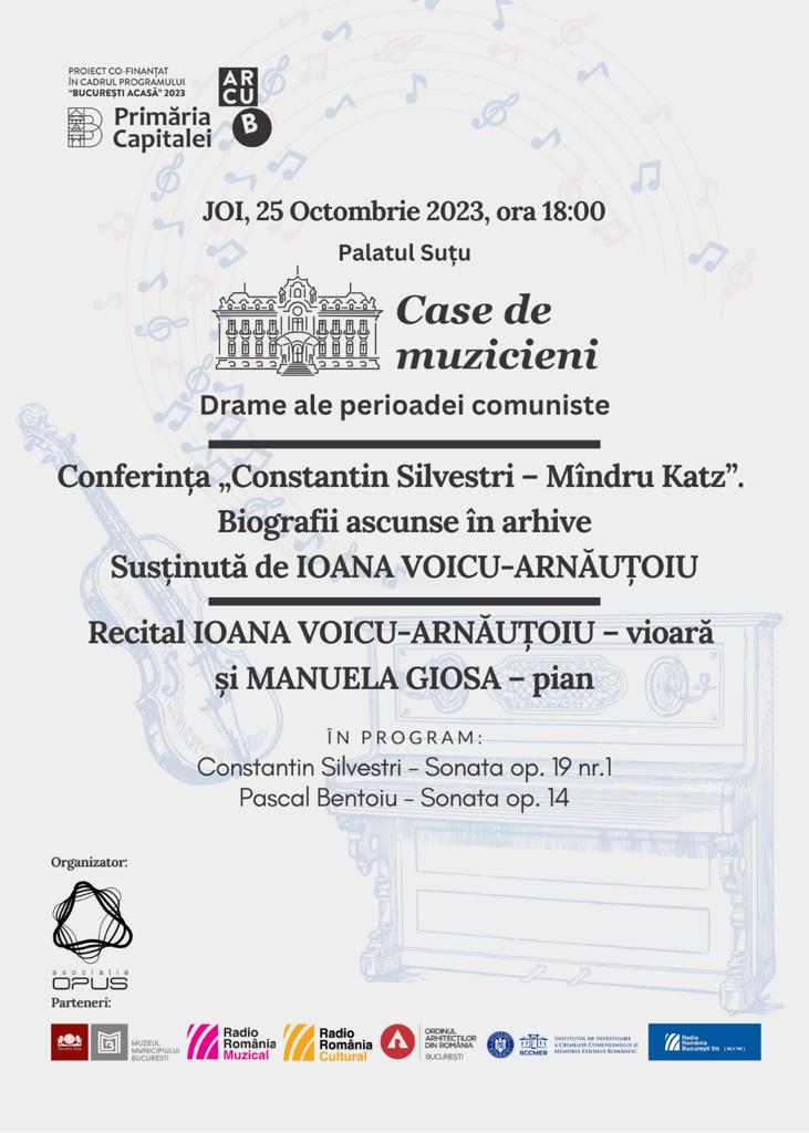 În această toamnă, la București, se derulează proiectul „Case de muzicieni. Drame ale perioadei comuniste”, o inițiativă a Asociației Opus, co-finanțat de Primăria Municipiului București, prin ARCUB, în cadrul Programului „București acasă 2023”.