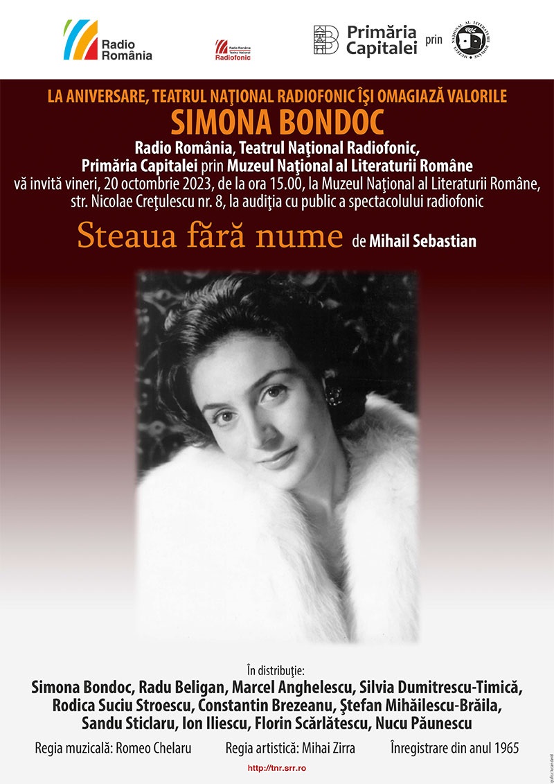 La audiţia de la Muzeul Național al Literaturii Române, Teatrul Naţional Radiofonic este readus în atenţie un spectacol din anul 1965, care poartă pecetea capodoperei: Steaua fără nume de Mihail Sebastian.