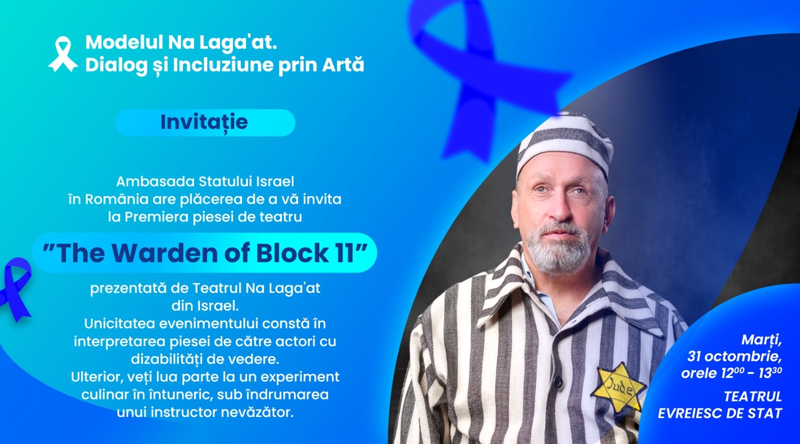 • ora 12:00-13:30 The Warden of Block 11 – spectacol de teatru, realizat de actori cu dizabilități de vedere