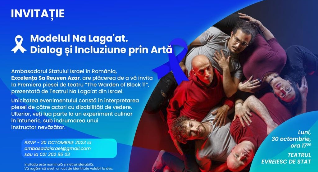 Ambasada Statului Israel în România și Teatrul Evreiesc de Stat organizează, în perioada 30 octombrie – 1 noiembrie 2023, o serie de evenimente speciale în cadrul proiectului „Dialog și incluziune socială – modelul Na Laga’at”.