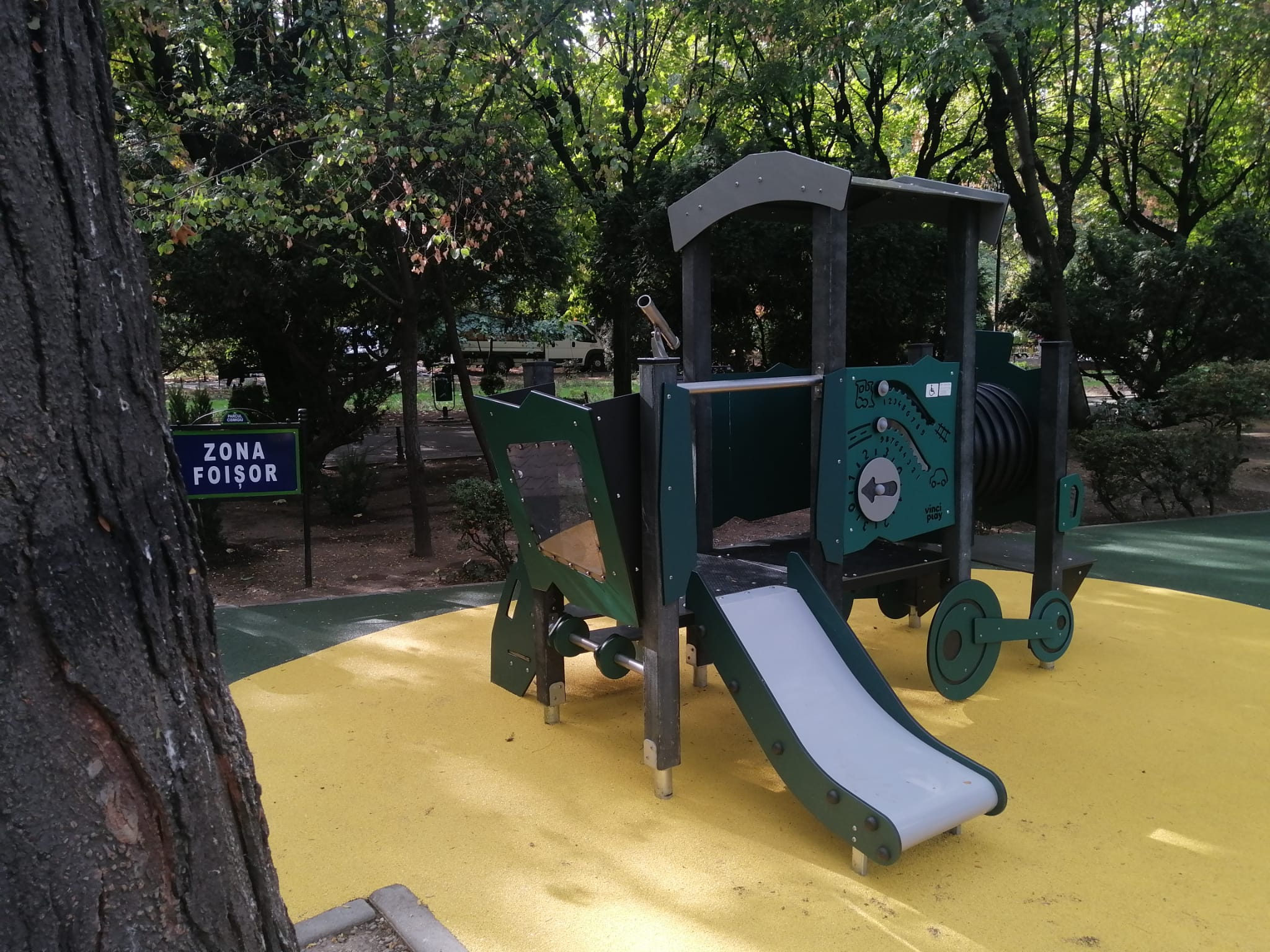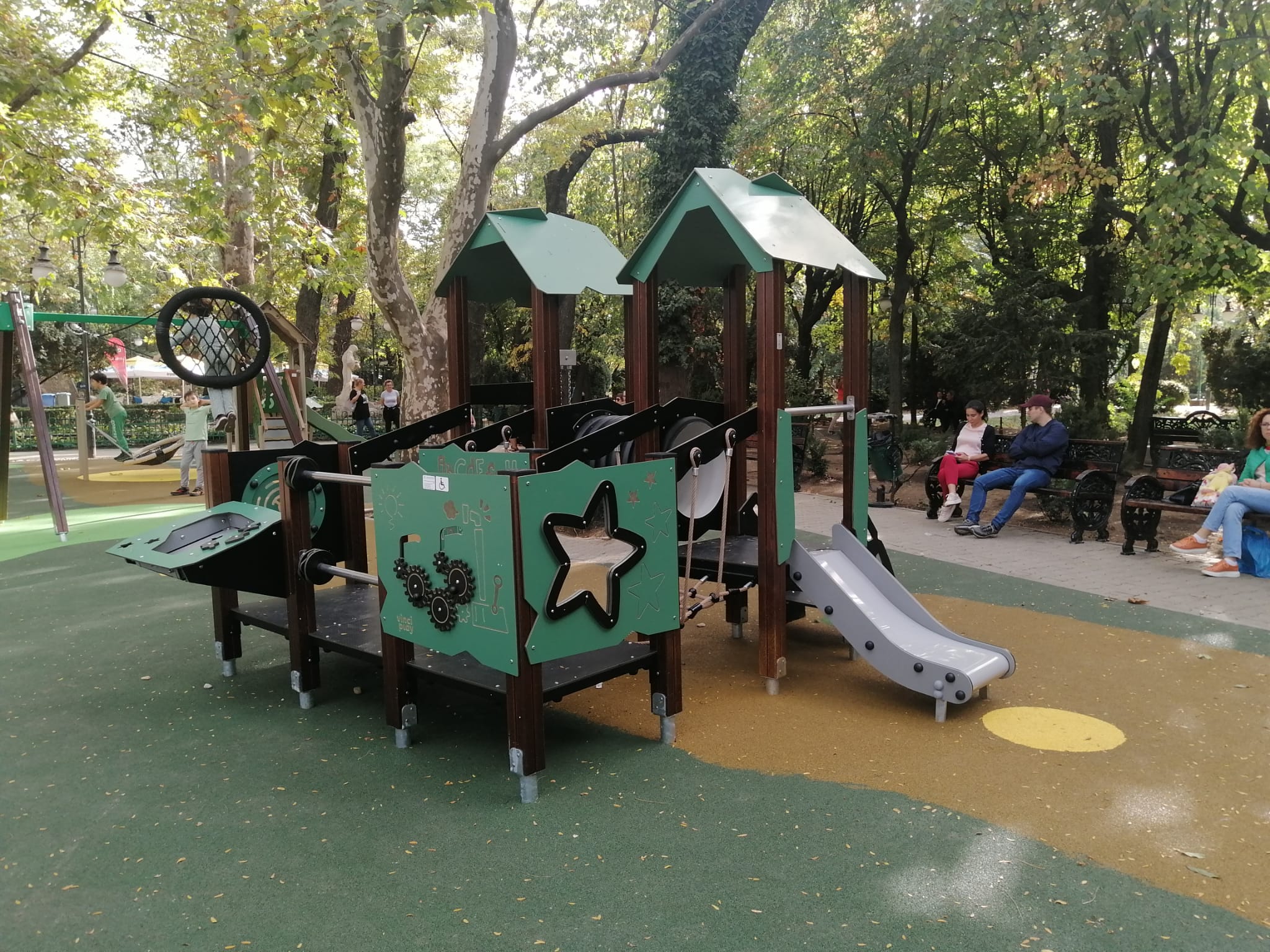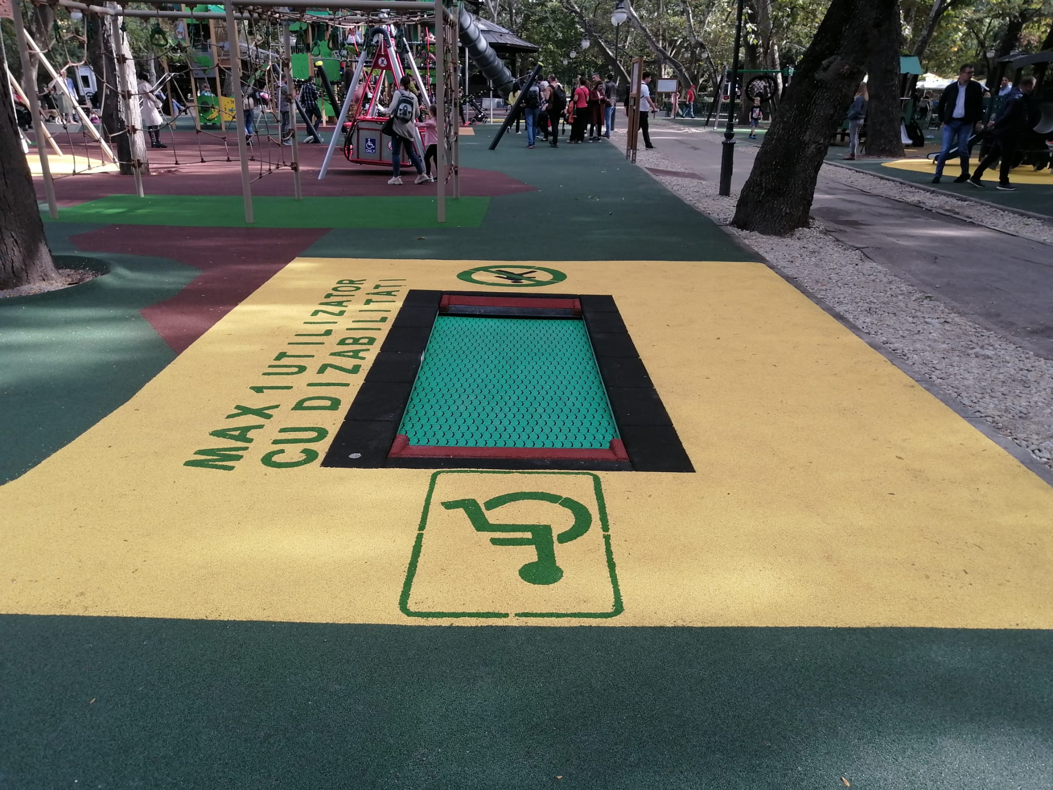 Noutatea, în ceea ce privește locul de joacă din centrul Cișmigiului, din zona Foișor, este că include și două apărare de joacă – un leagăn și o trambulină, accesibile copiilor cu nevoi speciale de deplasare.