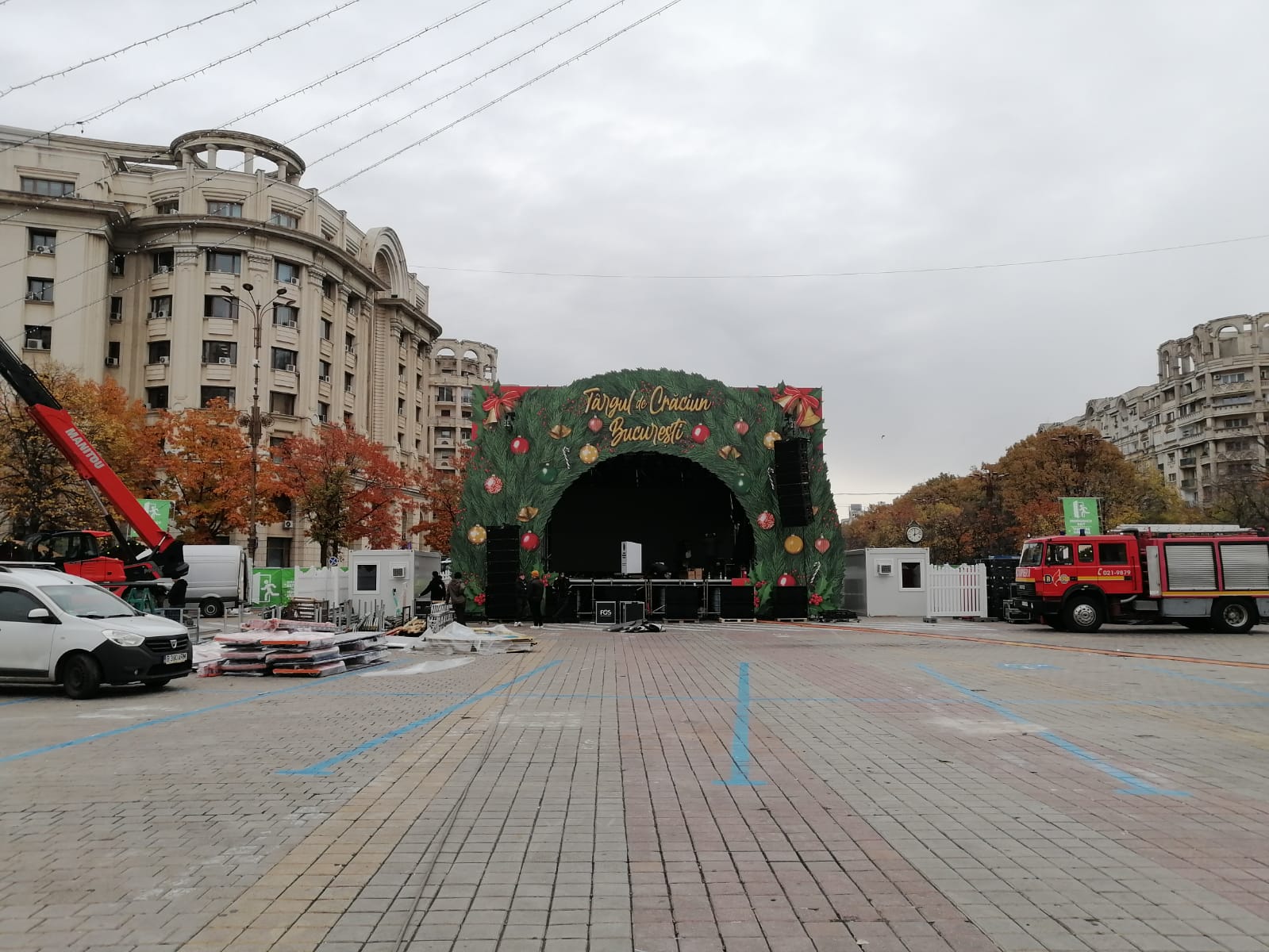 În Piața Constituției, amenajarea Târgului de Crăciun al Primăriei Capitalei a intrat în linie dreaptă