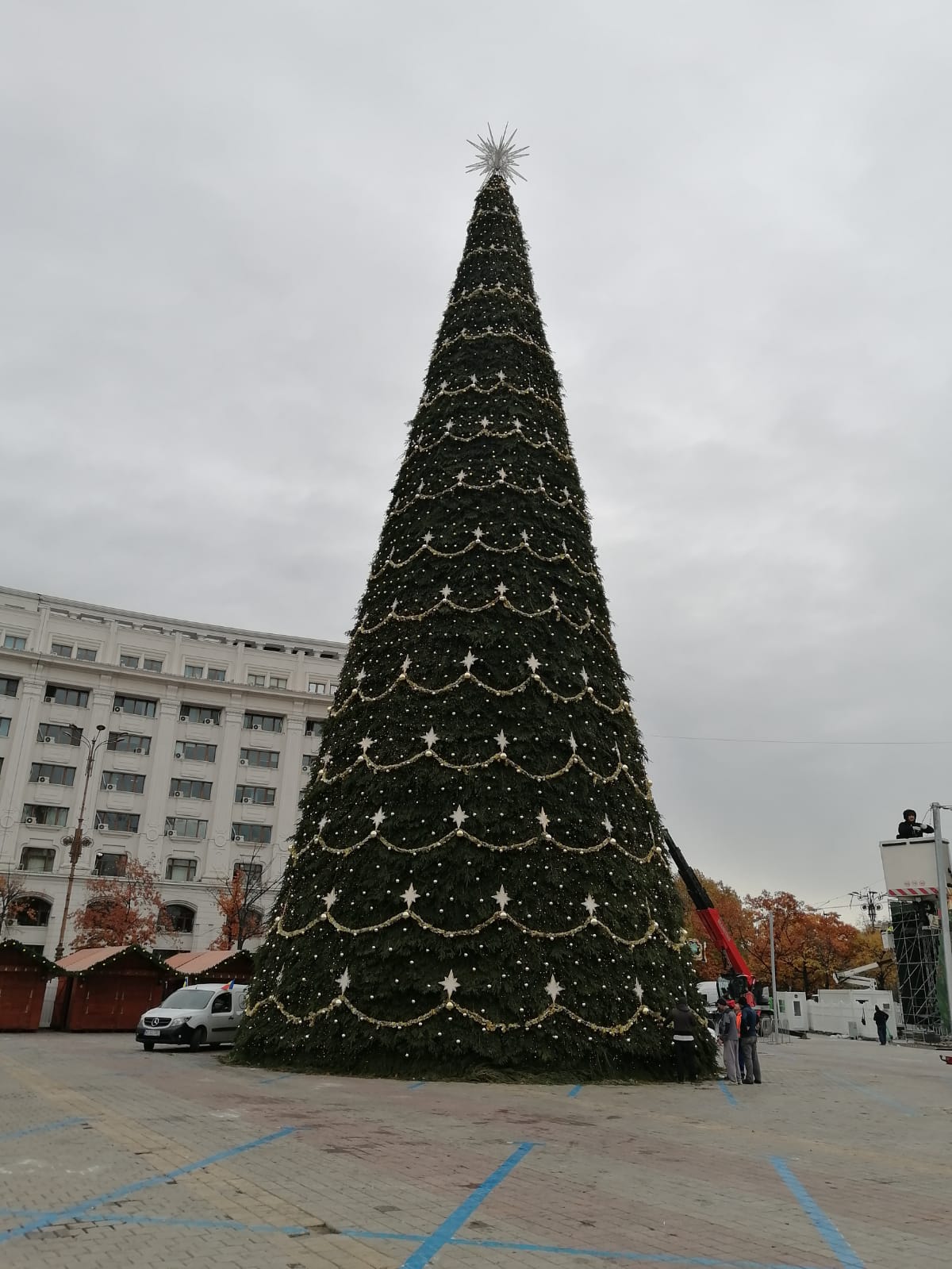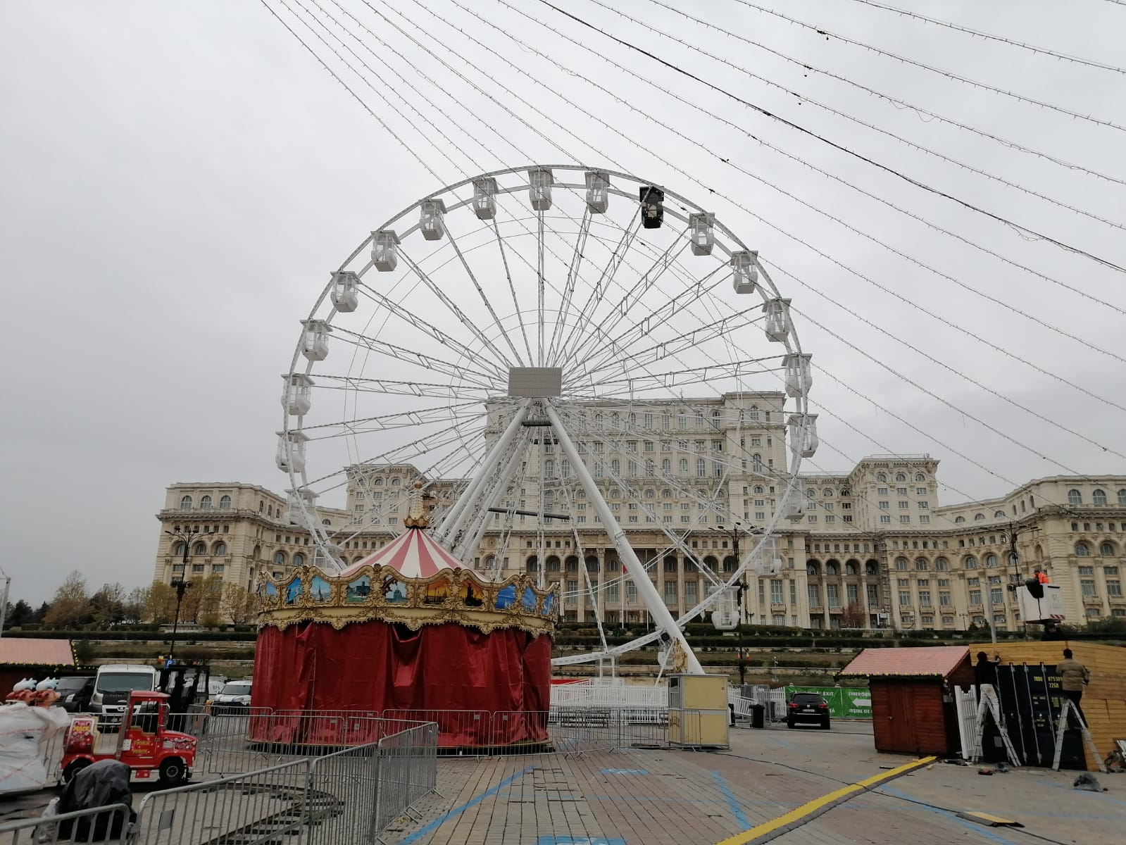 Se fac ultimele lucrări la pomul de Crăciun înalt cât un bloc de zece etaje, la roata mare, la Casa lui Moș Crăciun, dar și la căsuțele pentru produsele specifice Sărbătorilor.
