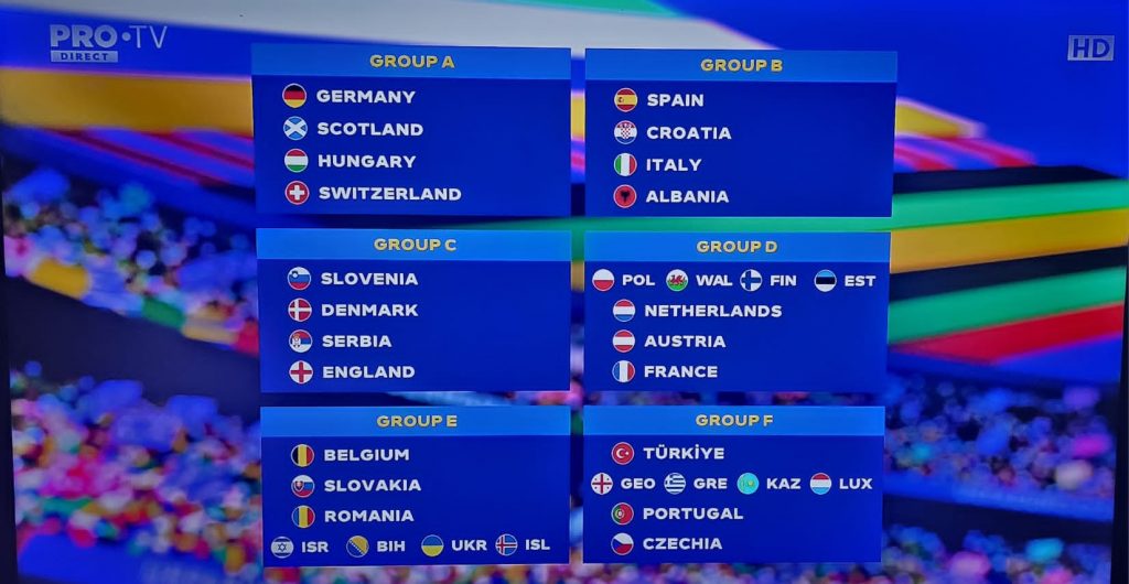 Sâmbătă, 2 decembrie, în direct, de la ora 19:00, a fost organizată tragerea la sorți a grupelor EURO 2024. Evenimentul a fost organizat la Hamburg, în Germania.