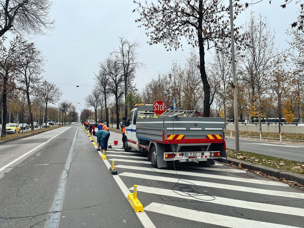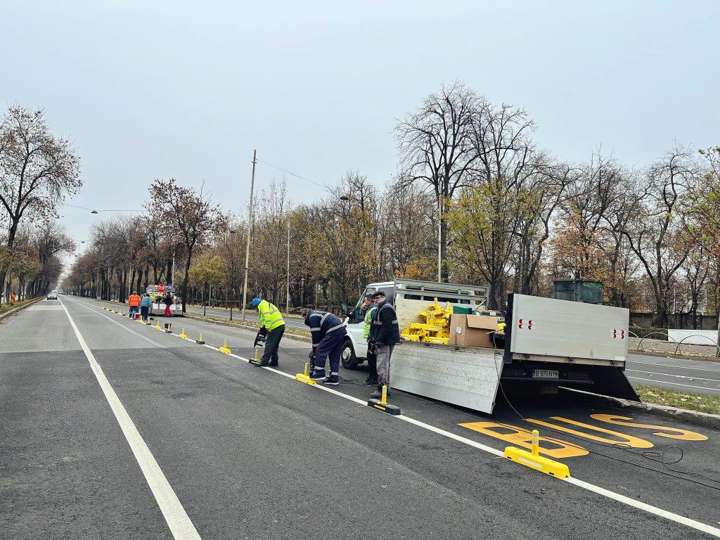 Lucrările pentru realizarea benzii dedicate transportului public avansează. Au fost montate separatoare de sens și indicatoare rutiere.