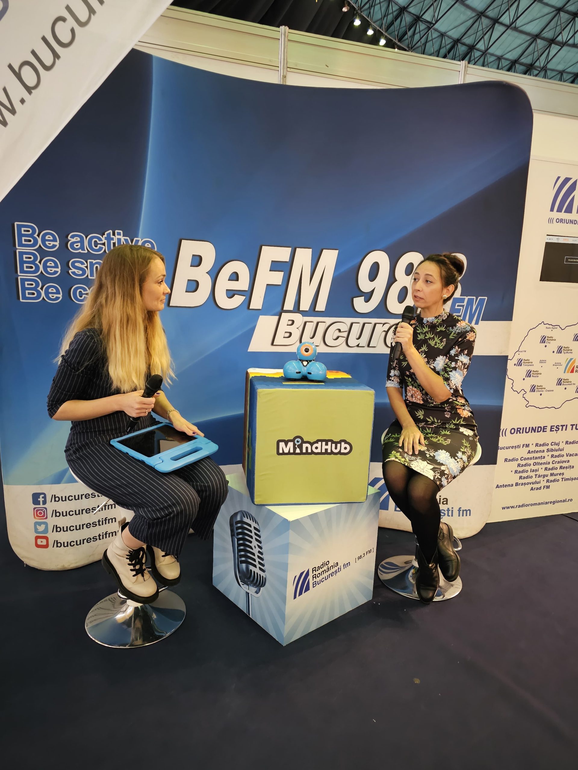 Adelina Năstase, Administrator Mind Hub Unirii a discutat cu Elena Zagaican despre atelierele de robotică și de asemenea a participat la o sesiune de programare.