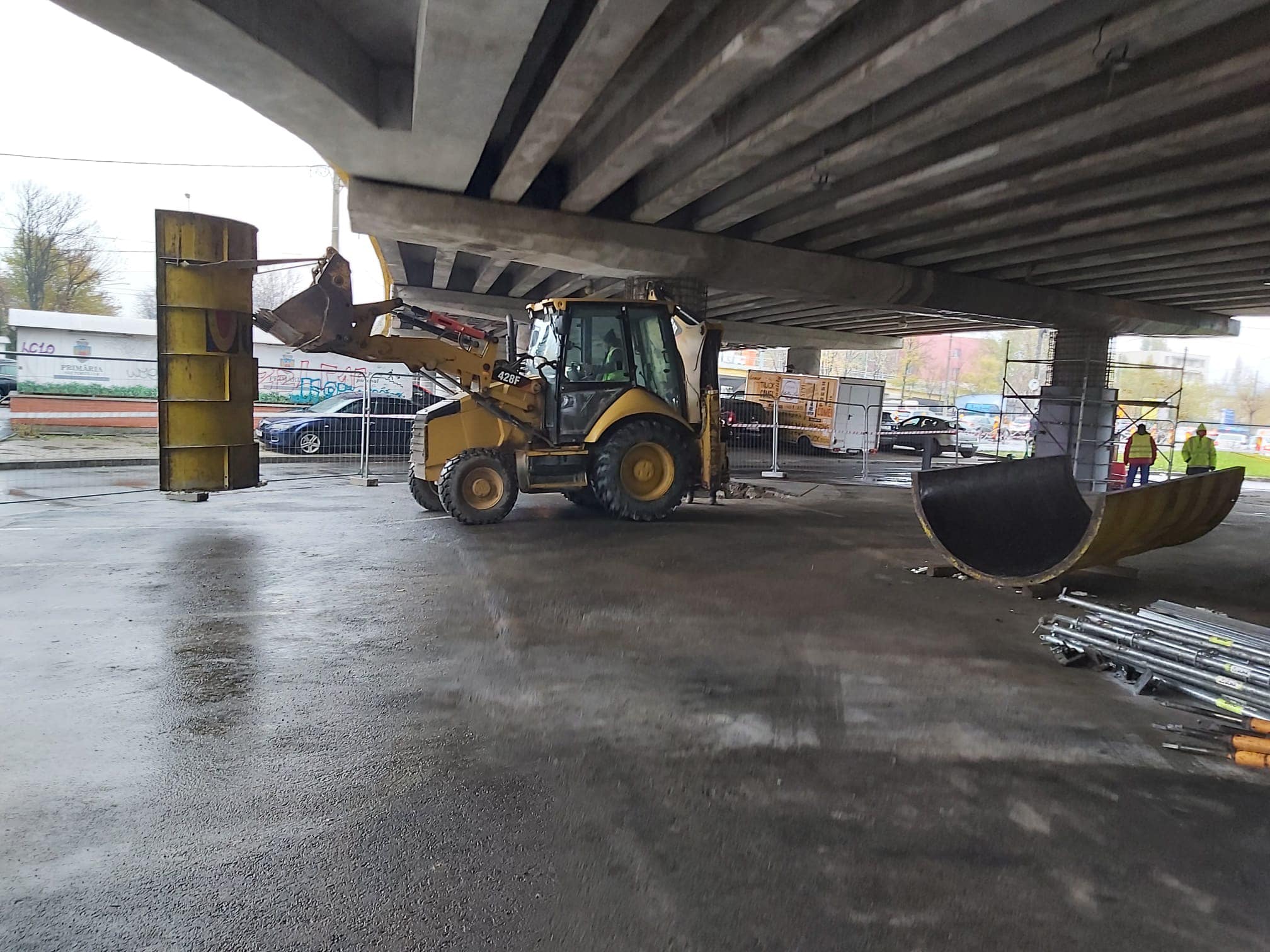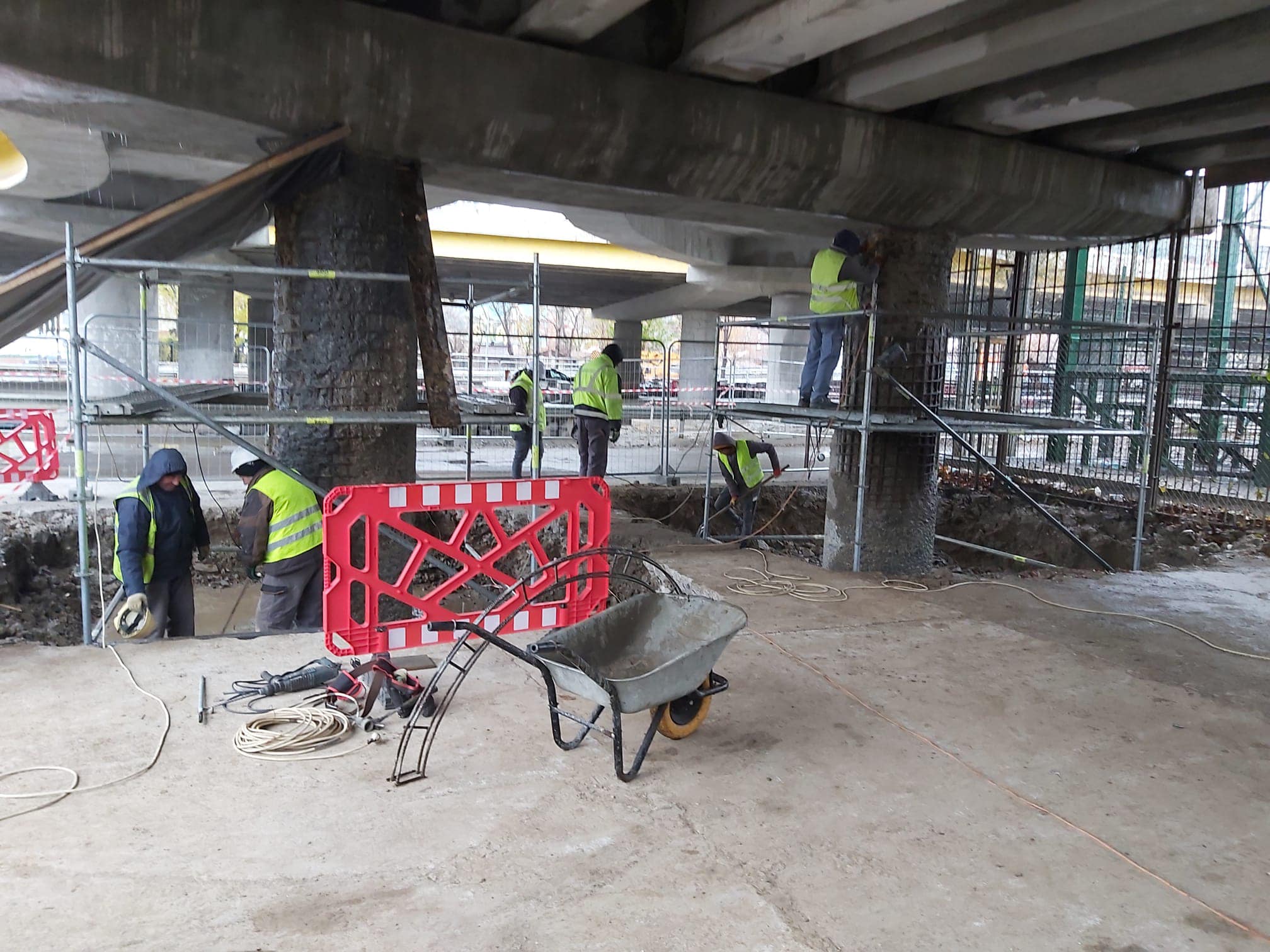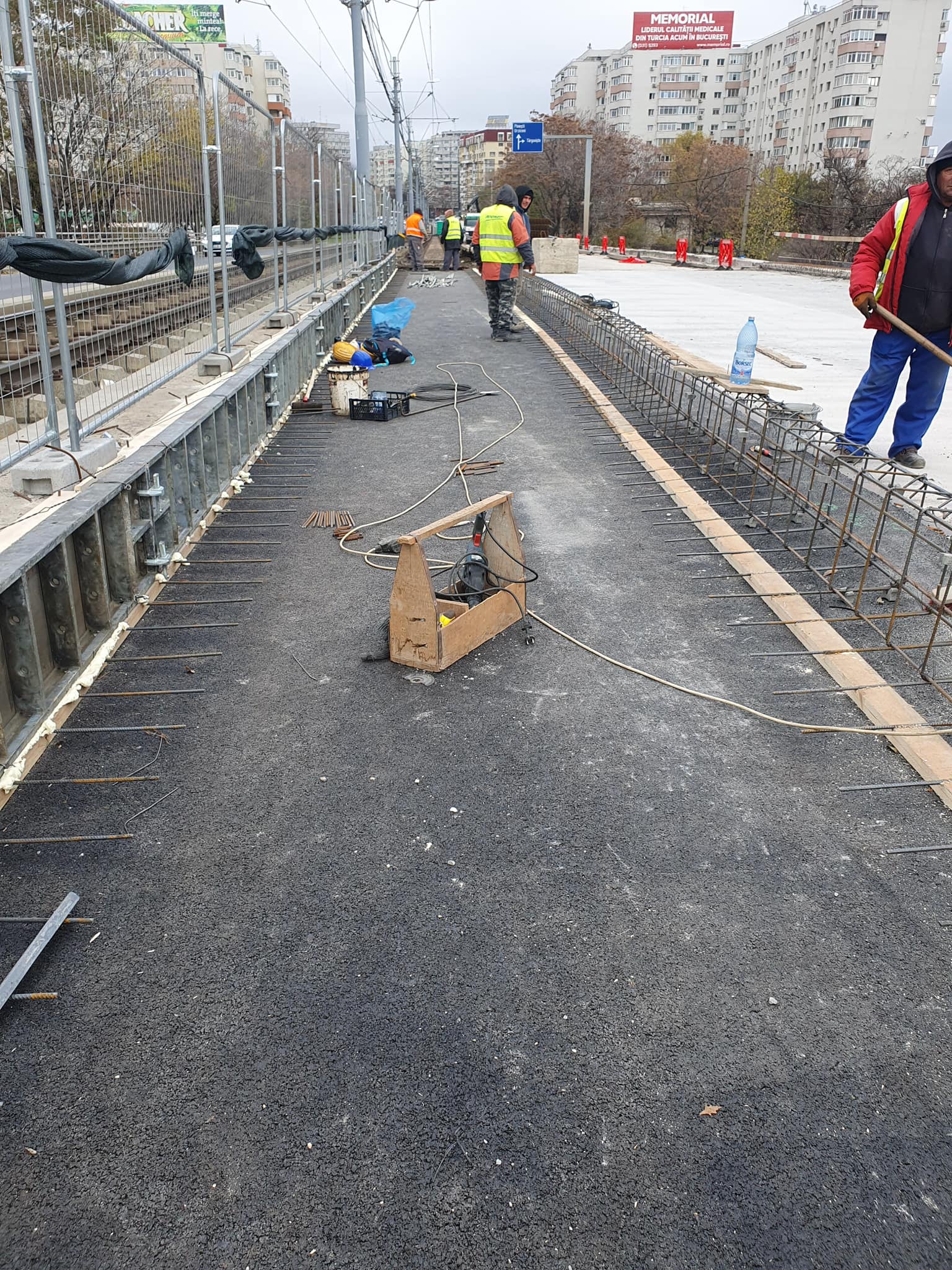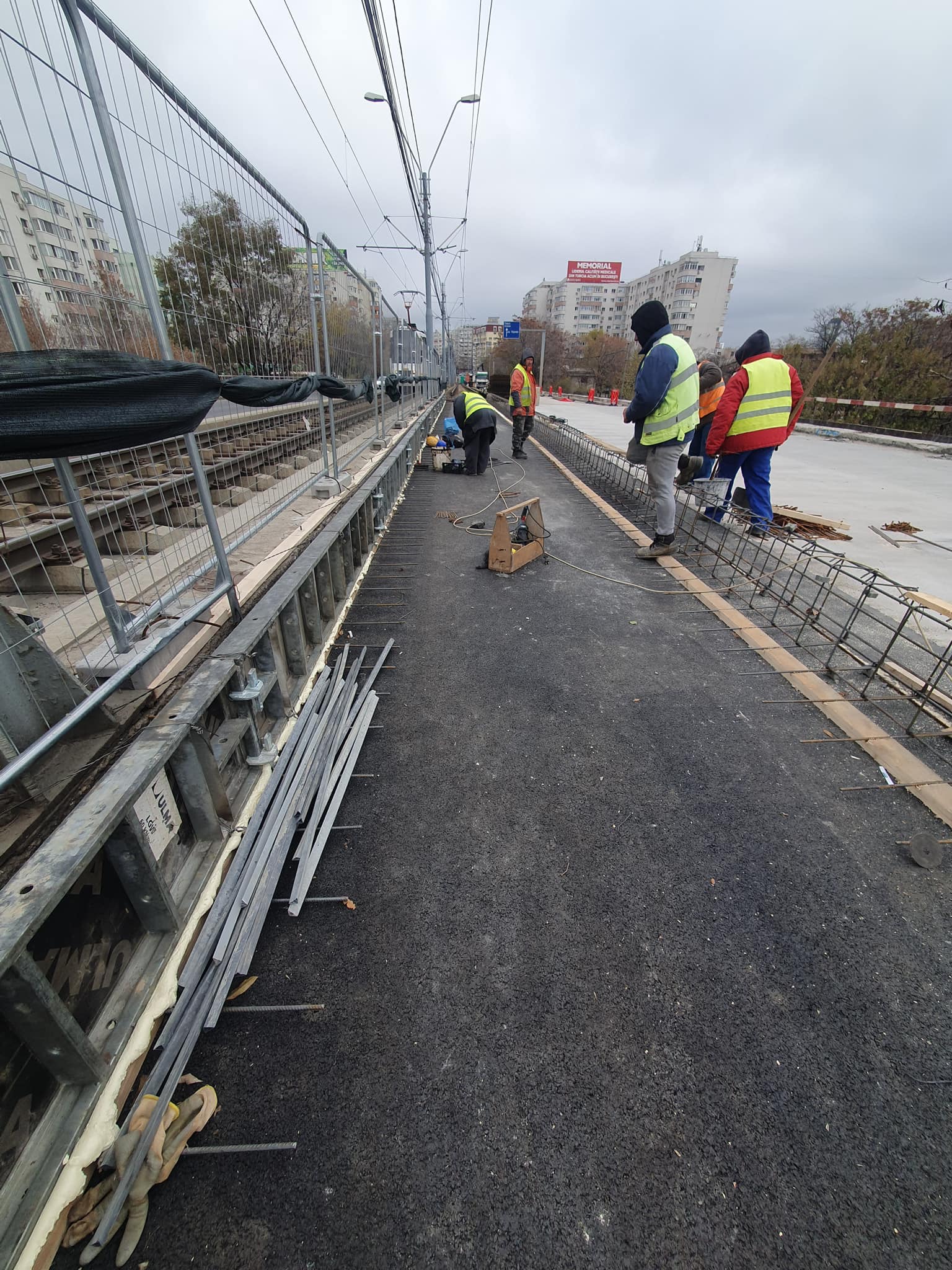 Zilele acestea se execută lucrări de armare și cofrare a cuvei aferente infrastructurii de tramvai, precum și reparații la grinzile și parapetele de pe pasajul principal.