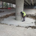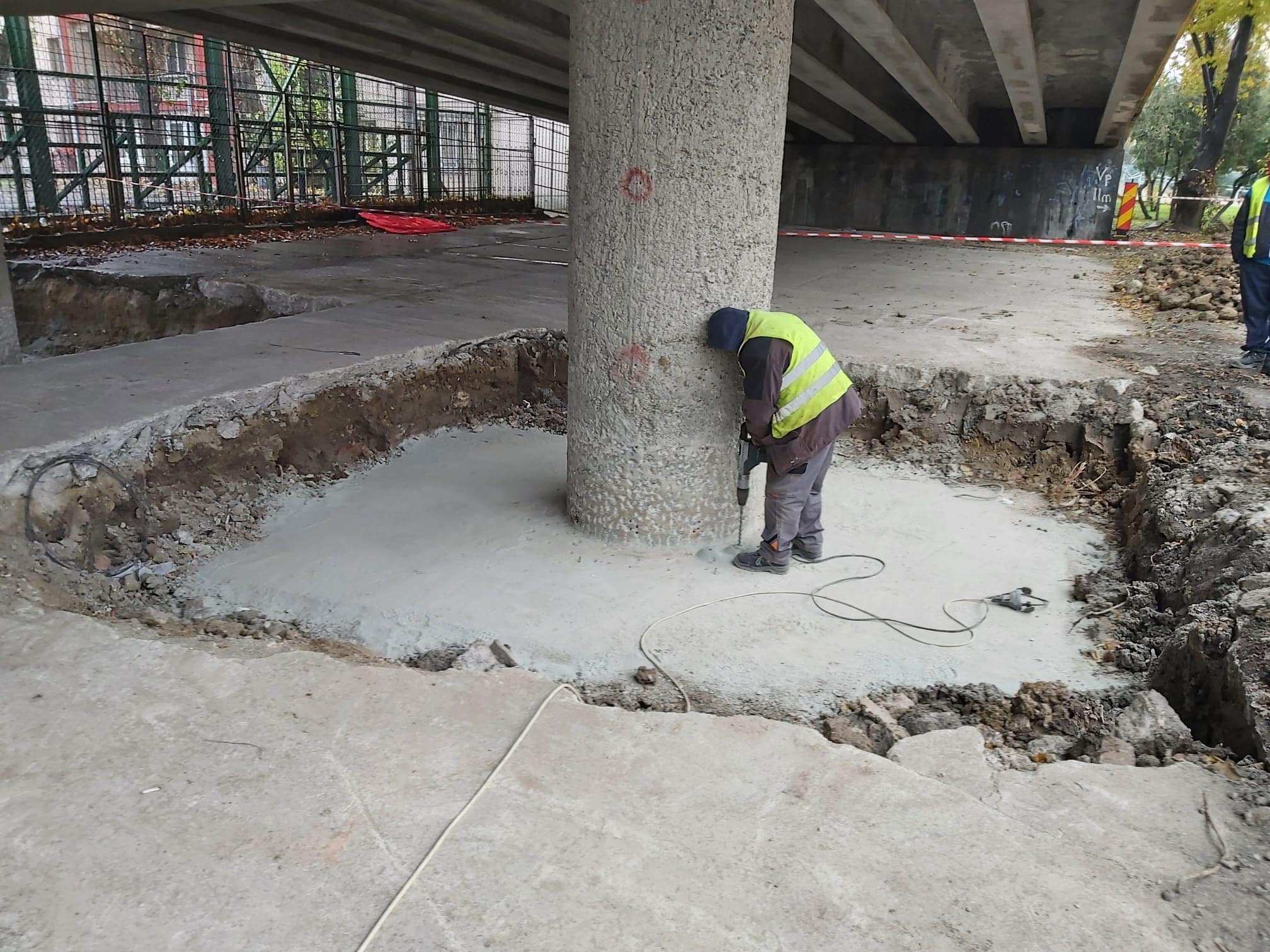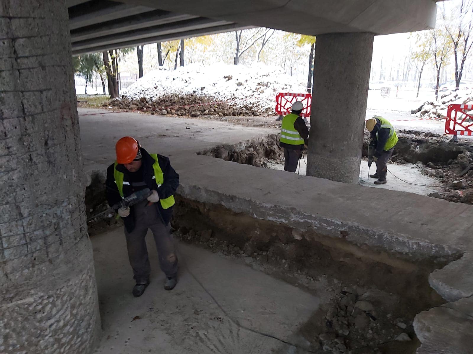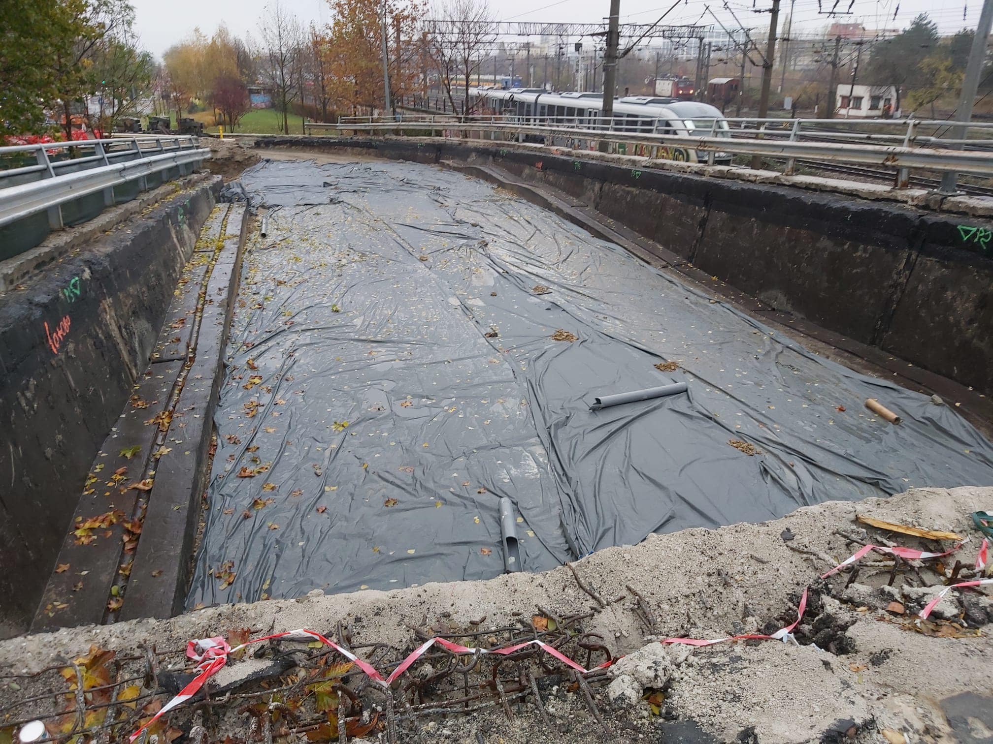 Zilele acestea se execută lucrări de armare și cofrare a cuvei aferente infrastructurii de tramvai, precum și reparații la grinzile și parapetele de pe pasajul principal.
