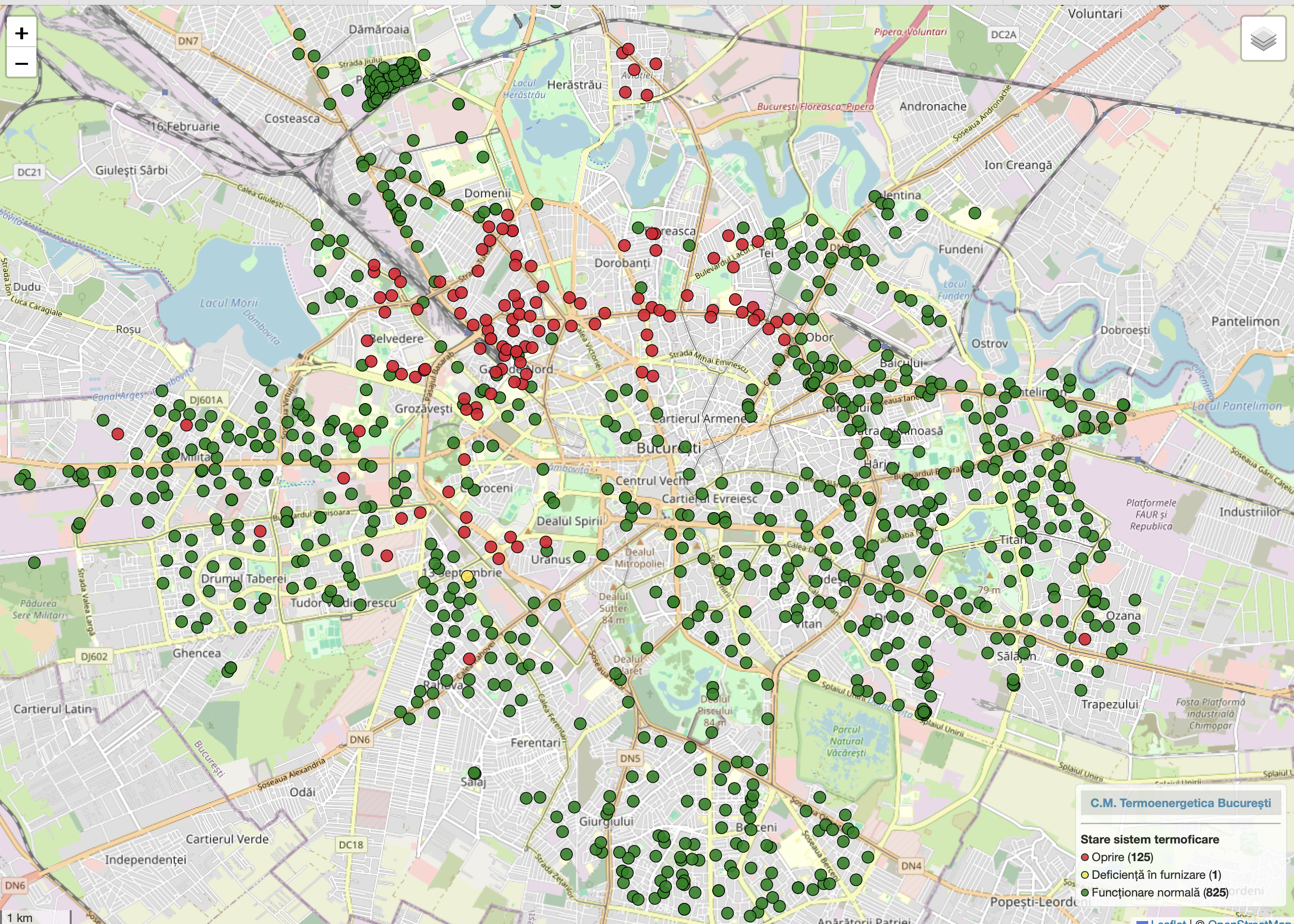 Harta stare sistem termoficare Bucuresti