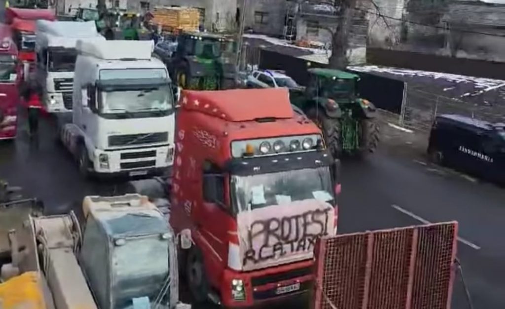 Șoferii care protestează claxonează şi circulă în cerc cu mașinile în parcarea din faţa Palatului Parlamentului, în faţa Parlamentului fiind prezente şi echipaje ale forțelor de ordine care se asigură că protestul nu va degenera!